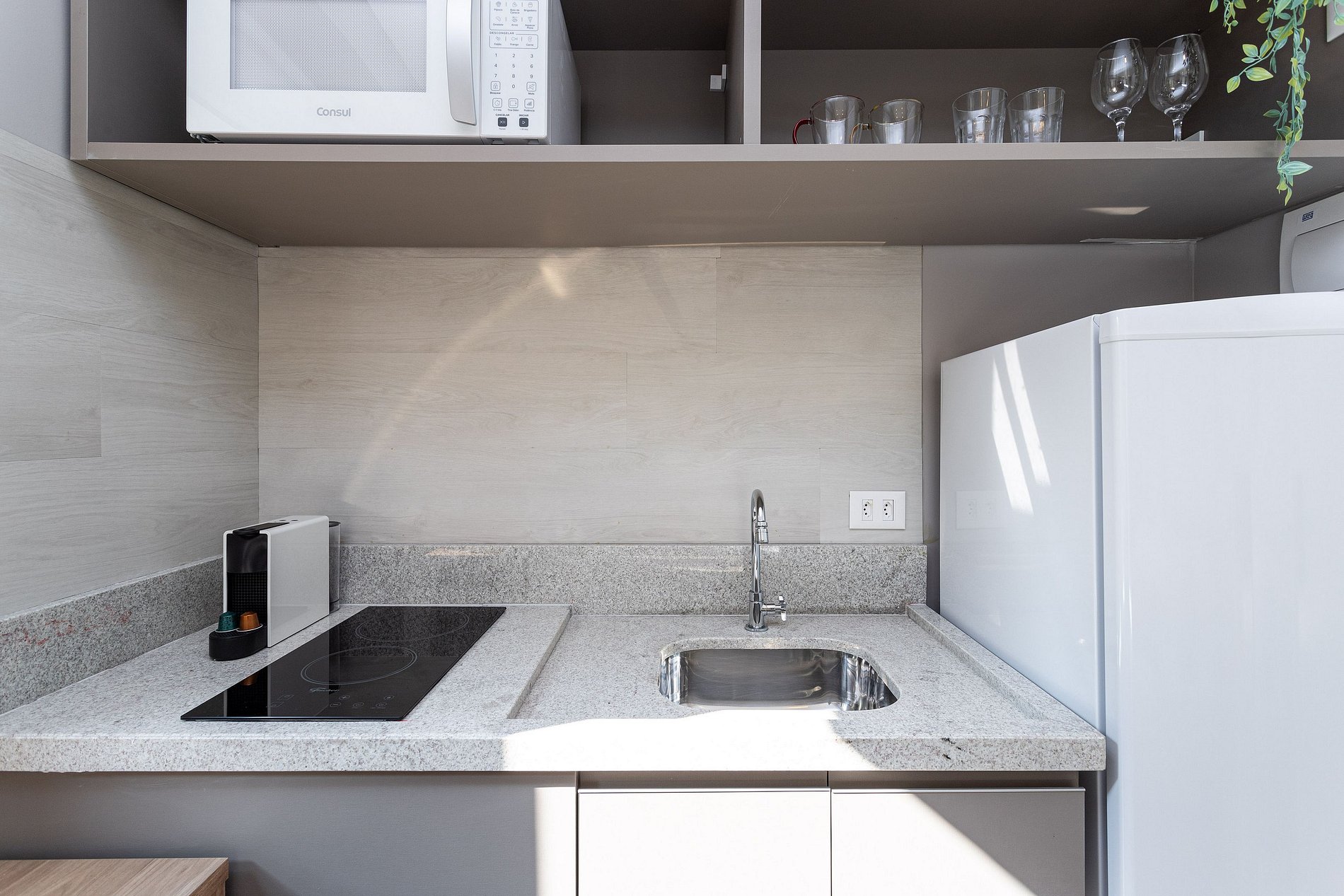 - Cozinha equipada com itens básicos para o preparo de refeições rápidas