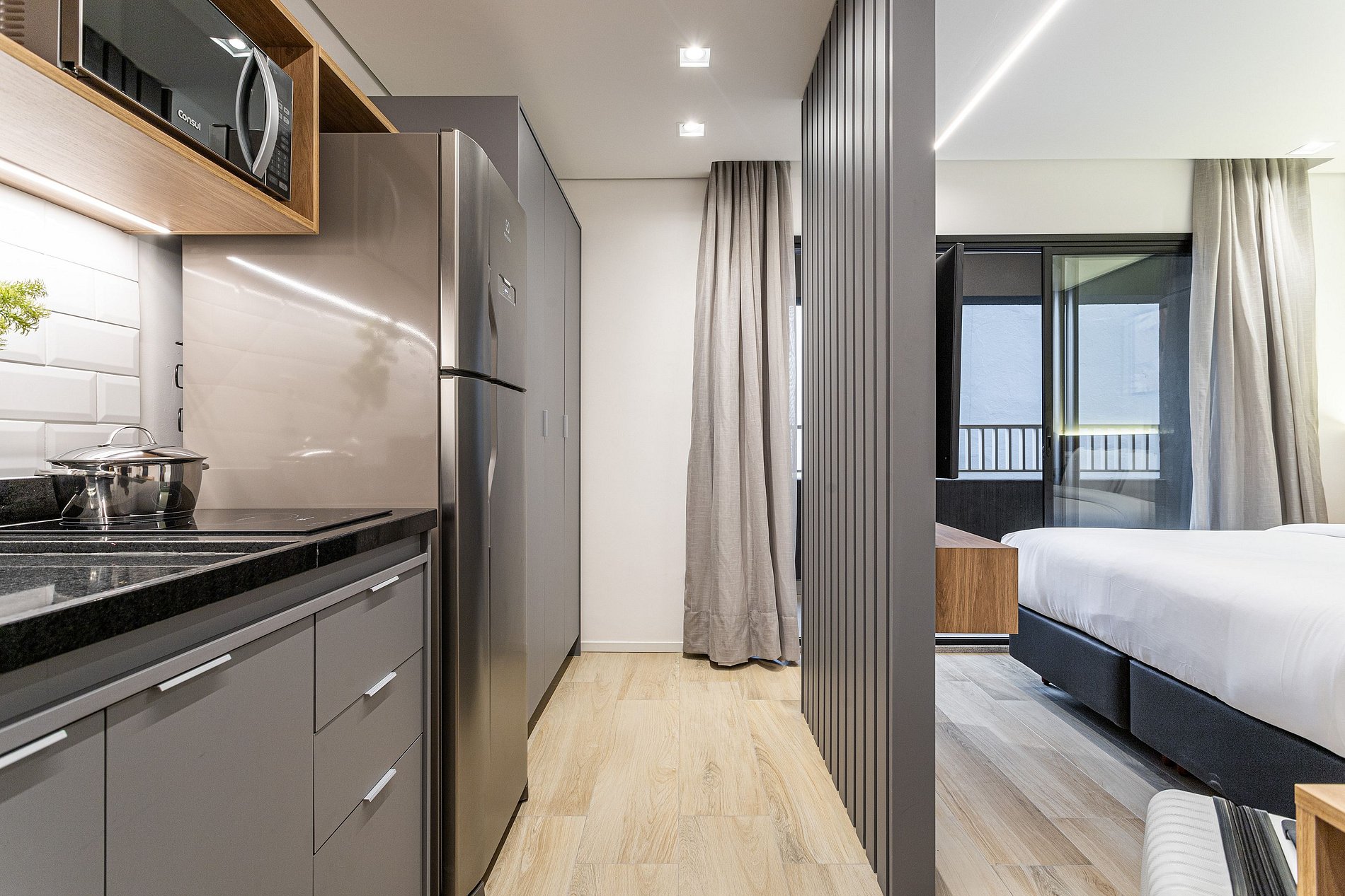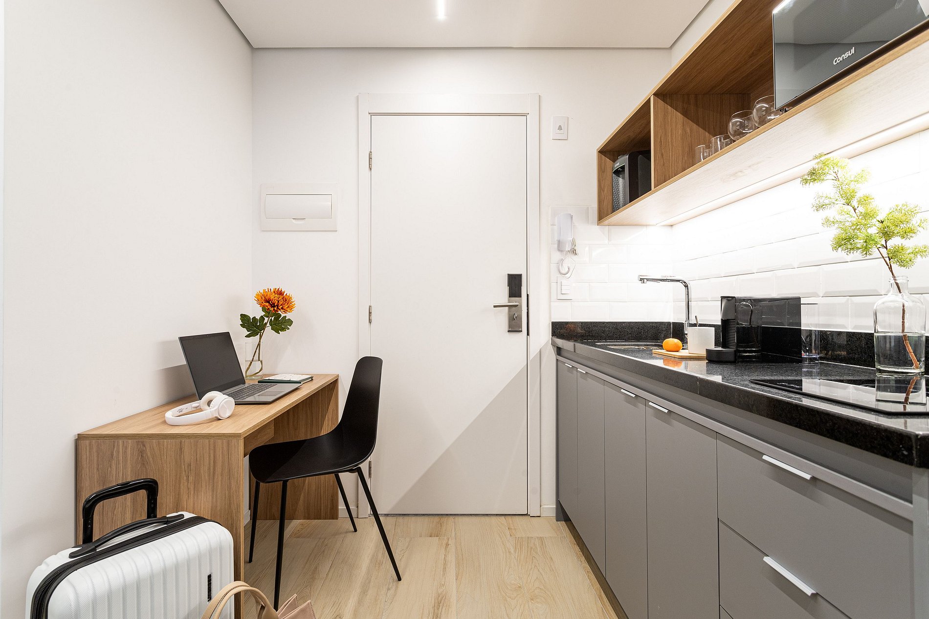 *A decoração e as amenidades dos apartamentos podem ter variações como cafeteira (pó x cápsula), ferro de passar x steamer, fogão x cooktop (com ou sem forno).