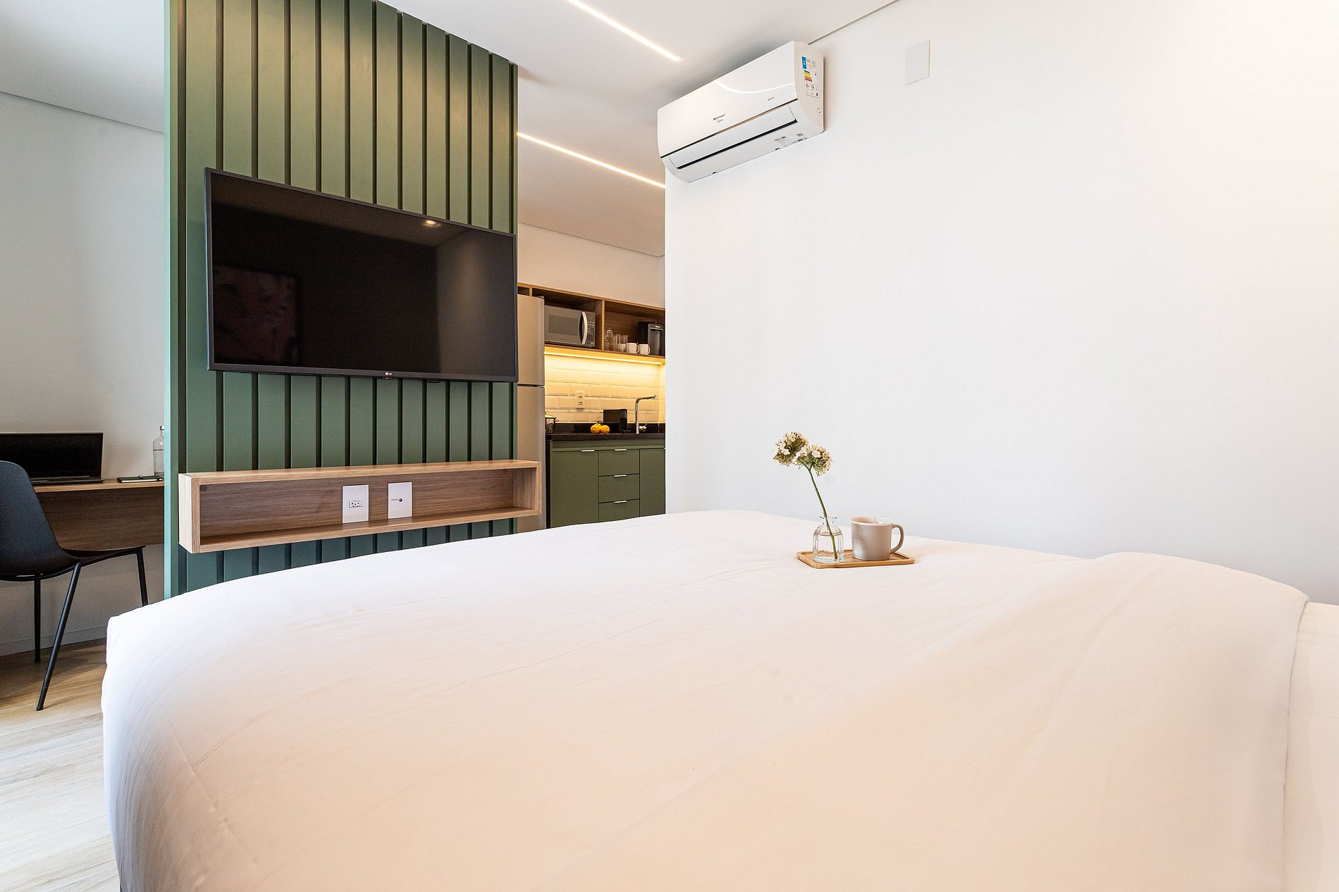 *A decoração e as amenidades dos apartamentos podem ter variações como cafeteira (pó x cápsula), ferro de passar x steamer, fogão x cooktop (com ou sem forno).