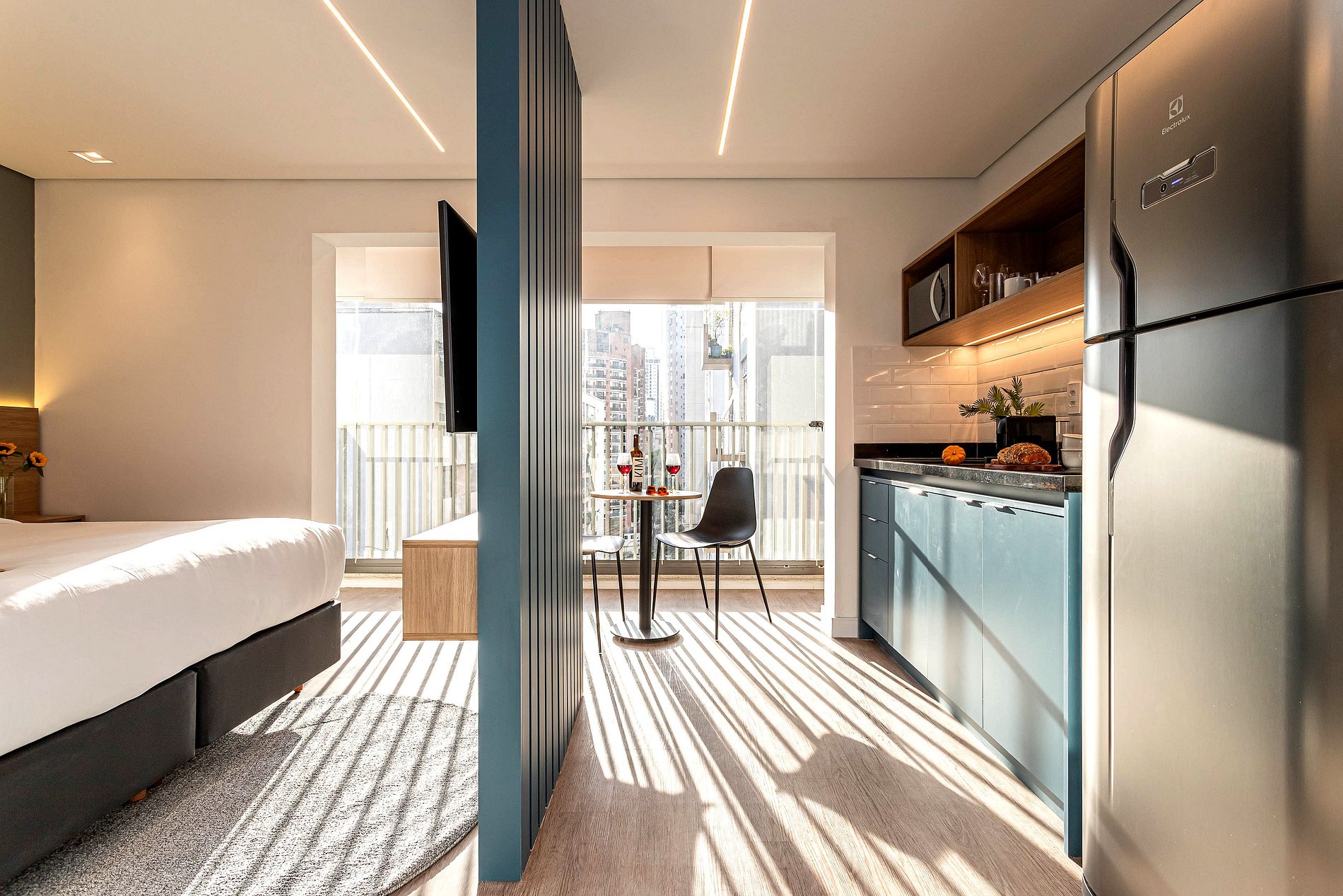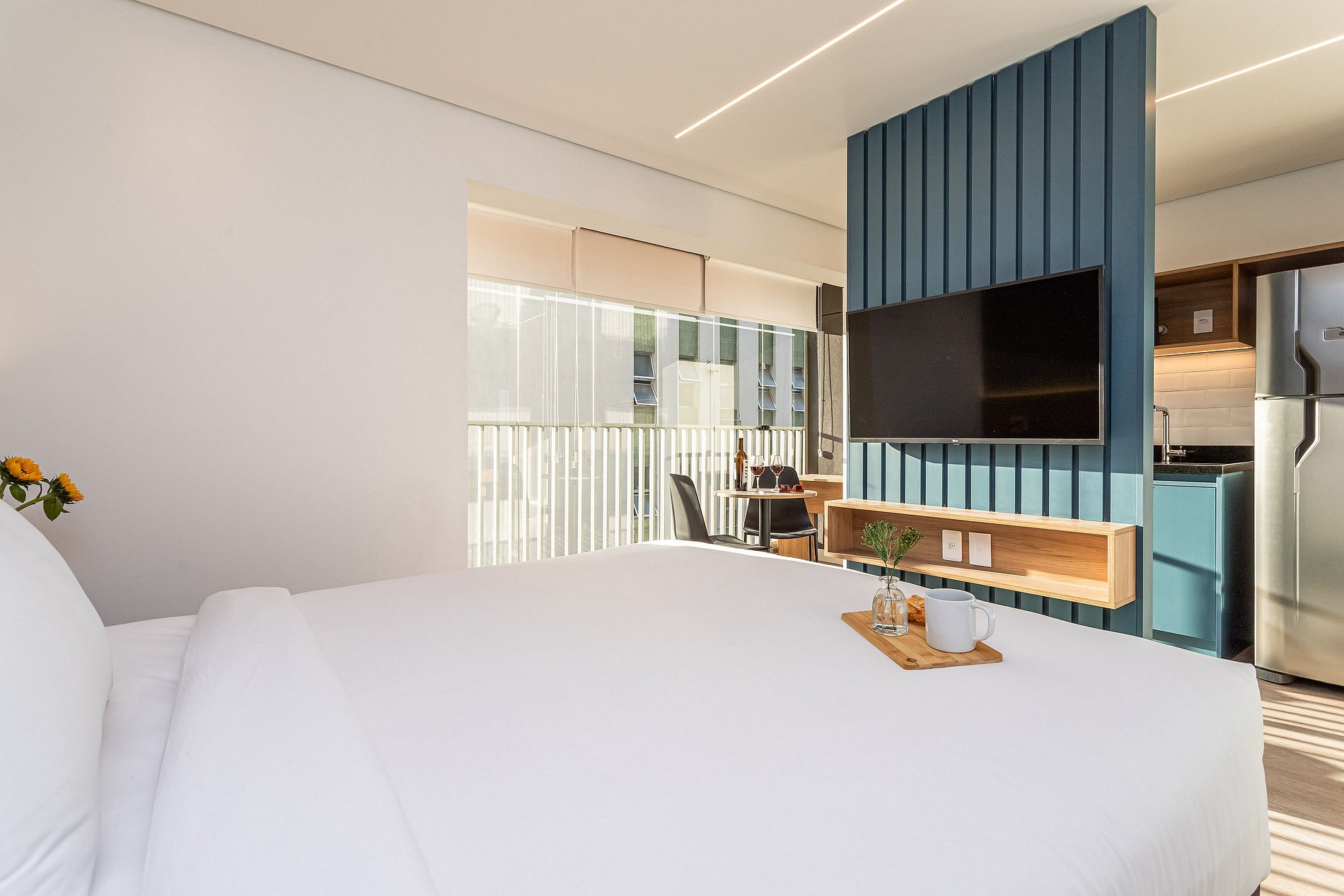 *A decoração e as amenidades dos apartamentos podem ter variações como cafeteira (pó x cápsula), ferro de passar x steamer, fogão x cooktop (com ou sem forno).
