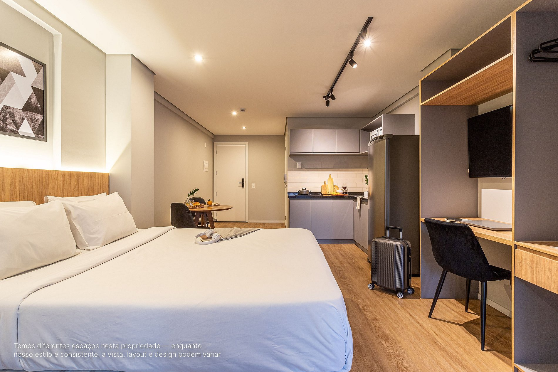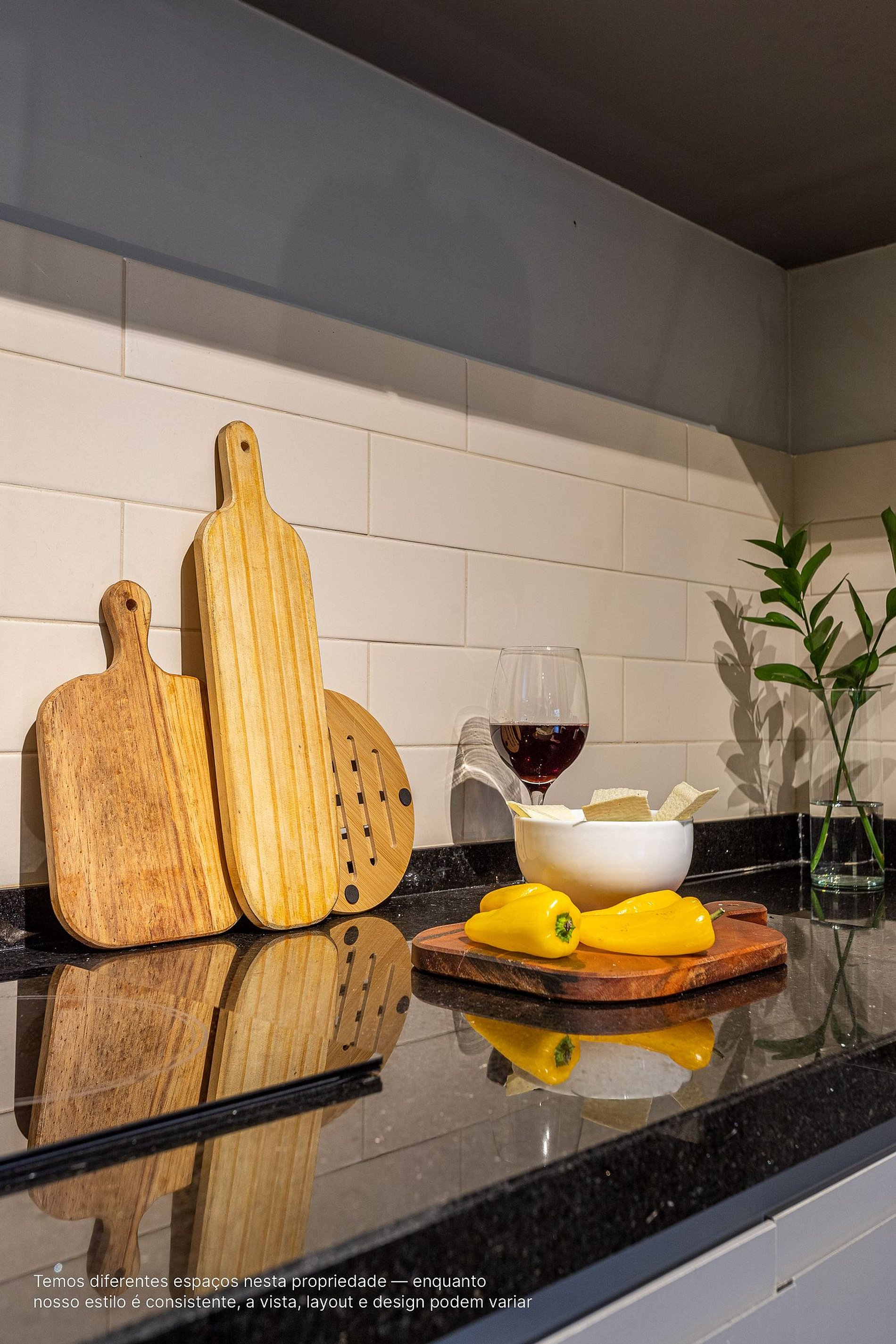 *A decoração e as amenidades dos apartamentos podem ter variações como cafeteira (pó x cápsula), ferro de passar x steamer, fogão x cooktop (com ou sem forno).