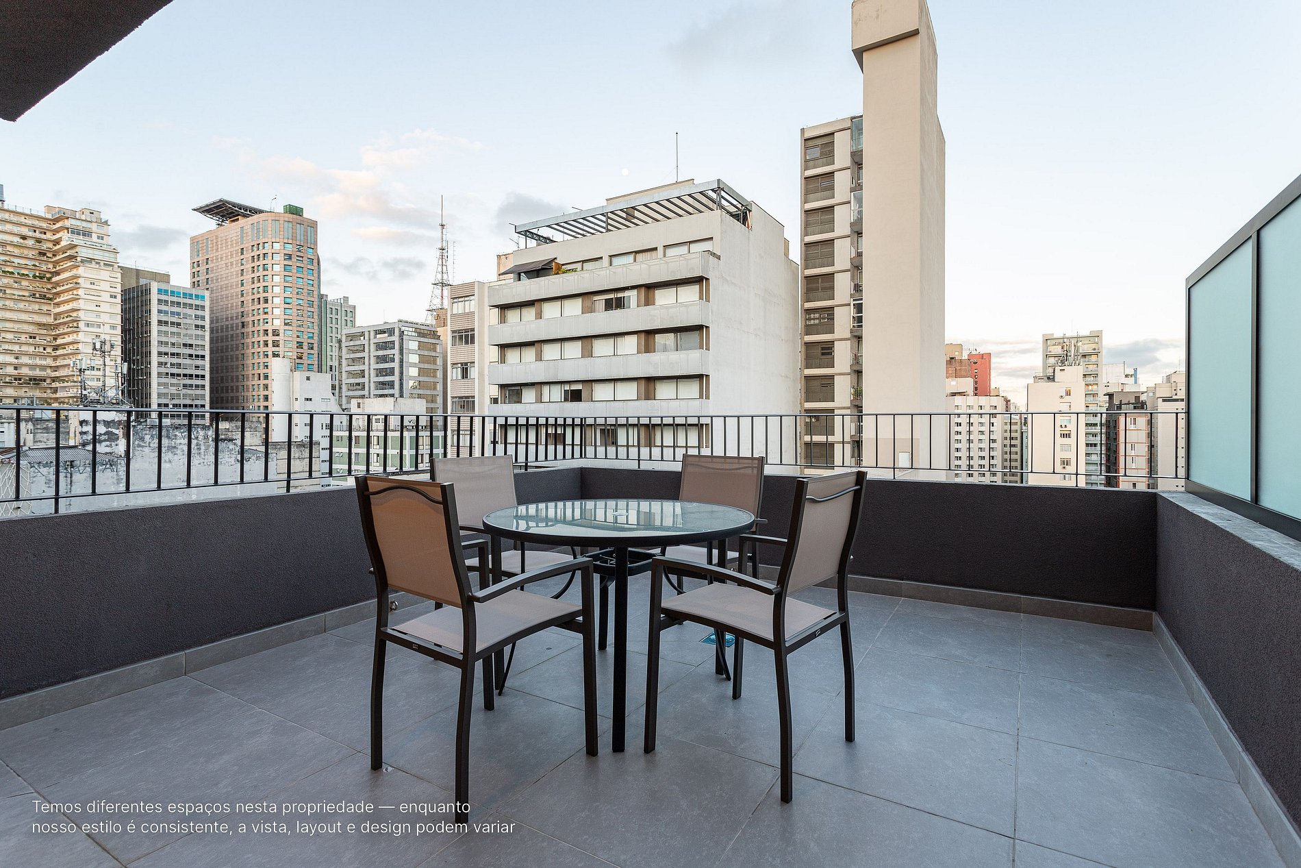 - Temos diferentes espaços nesta propriedade, todos eles projetados para você ter uma ótima estadia — enquanto nosso estilo é consistente, a vista, layout e design podem variar
