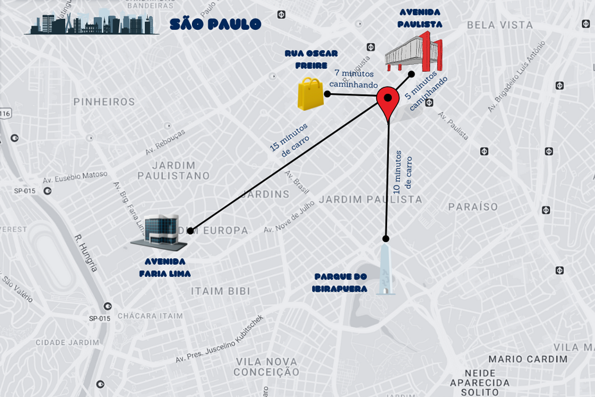 - 10 minutos caminhando até a Rua Oscar Freire