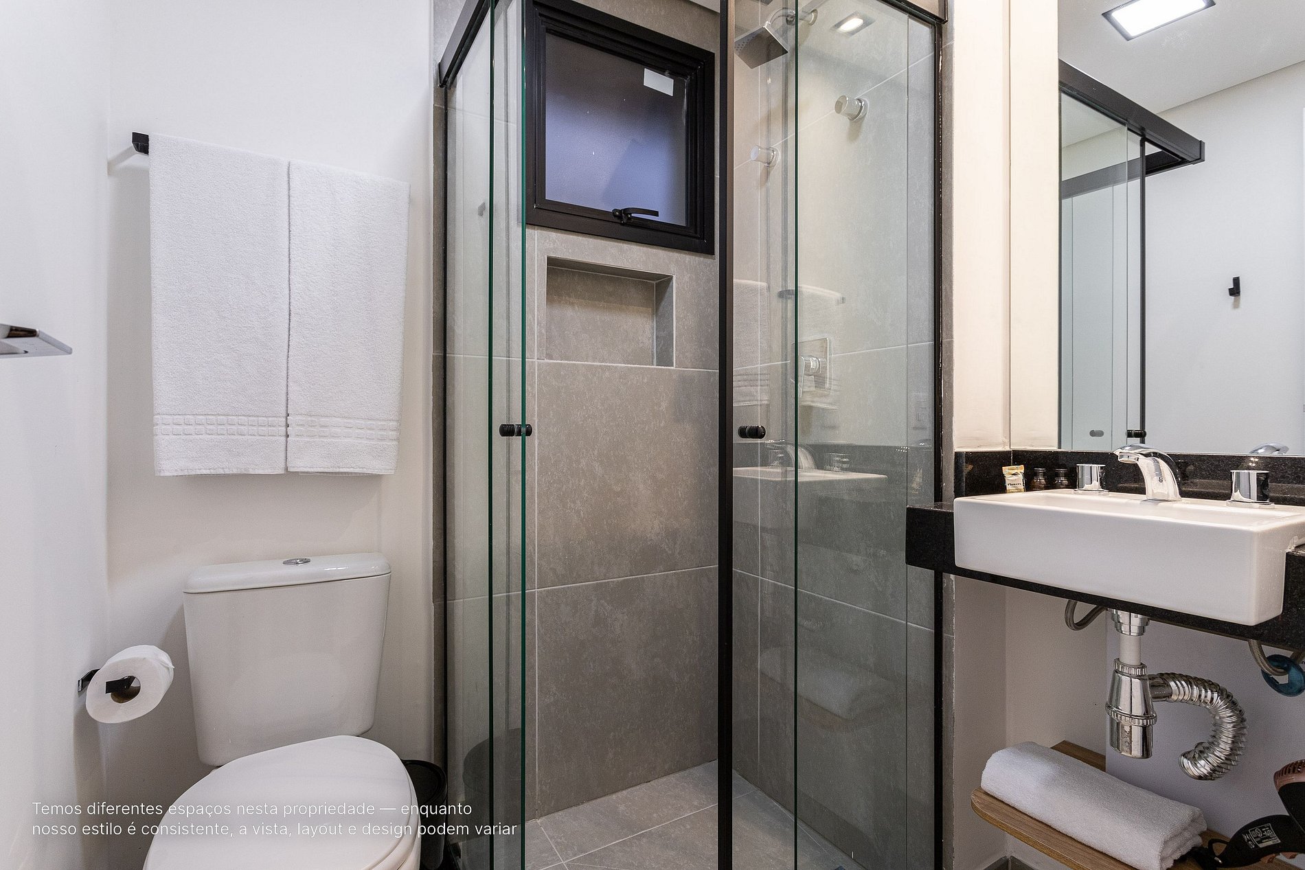 - Temos diferentes espaços nesta propriedade, todos eles projetados para você ter uma ótima estadia — enquanto nosso estilo é consistente, a vista, layout e design podem variar