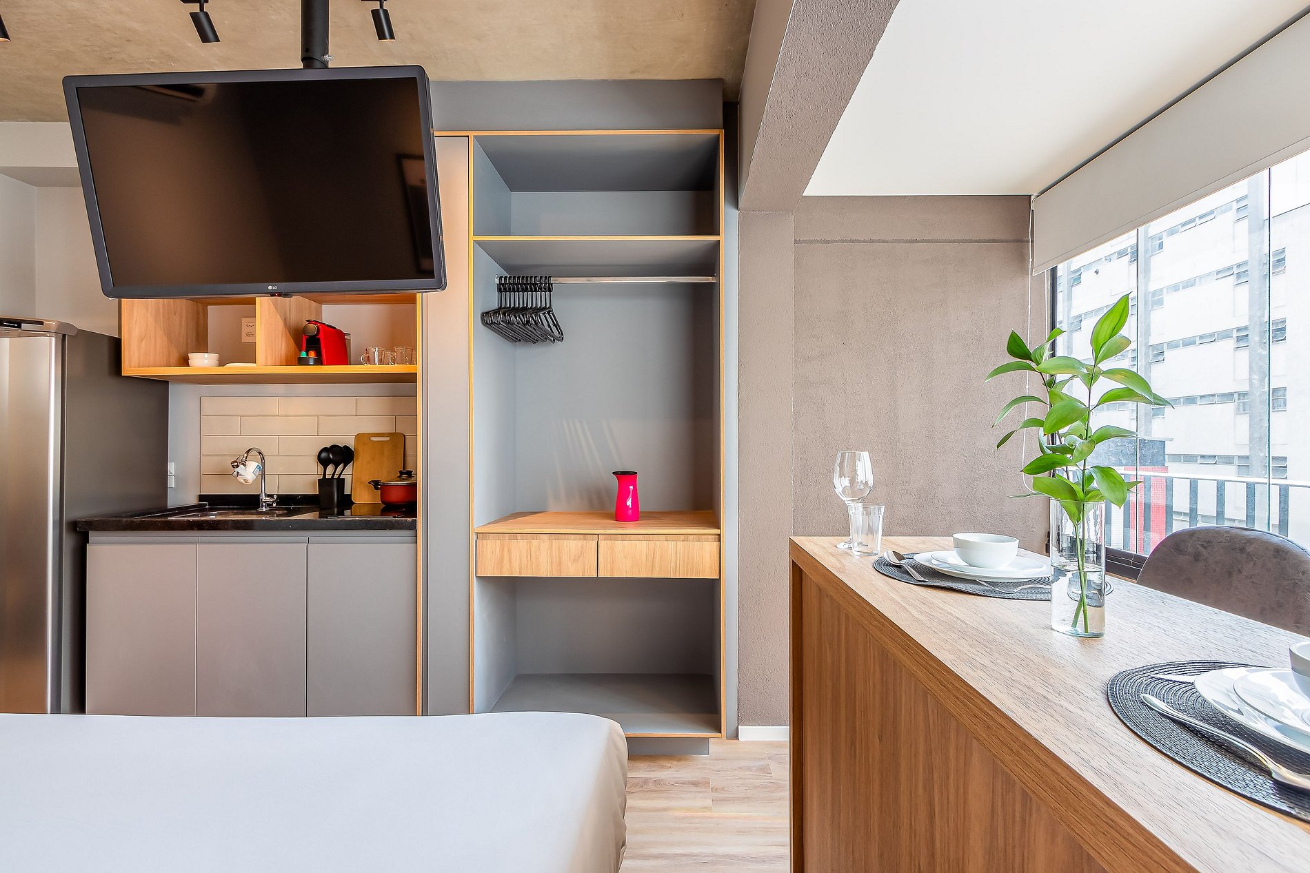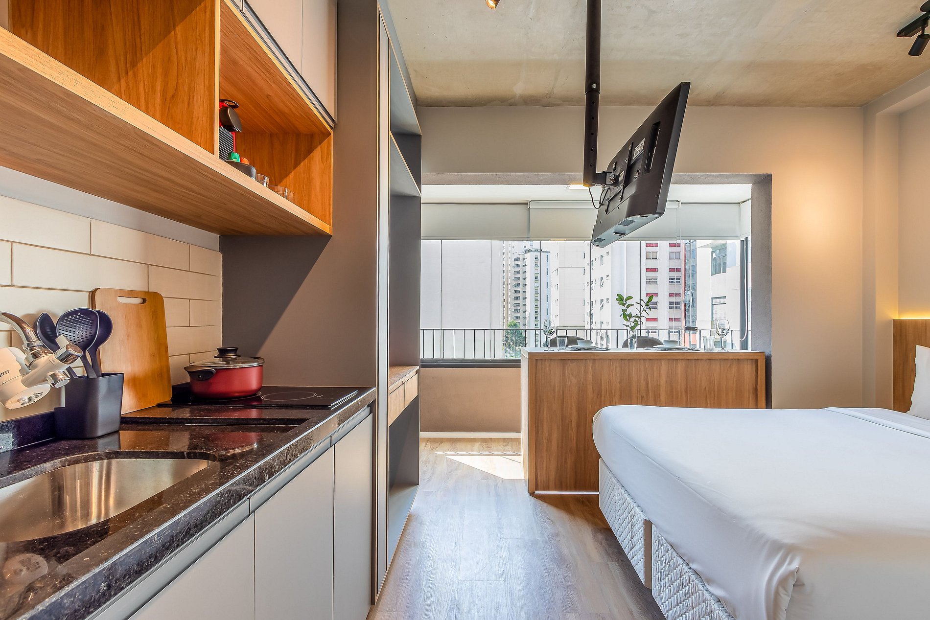 *A decoração e as amenidades dos apartamentos podem ter variações como cafeteira (pó x cápsula), ferro de passar x steamer, fogão x cooktop (com ou sem forno).