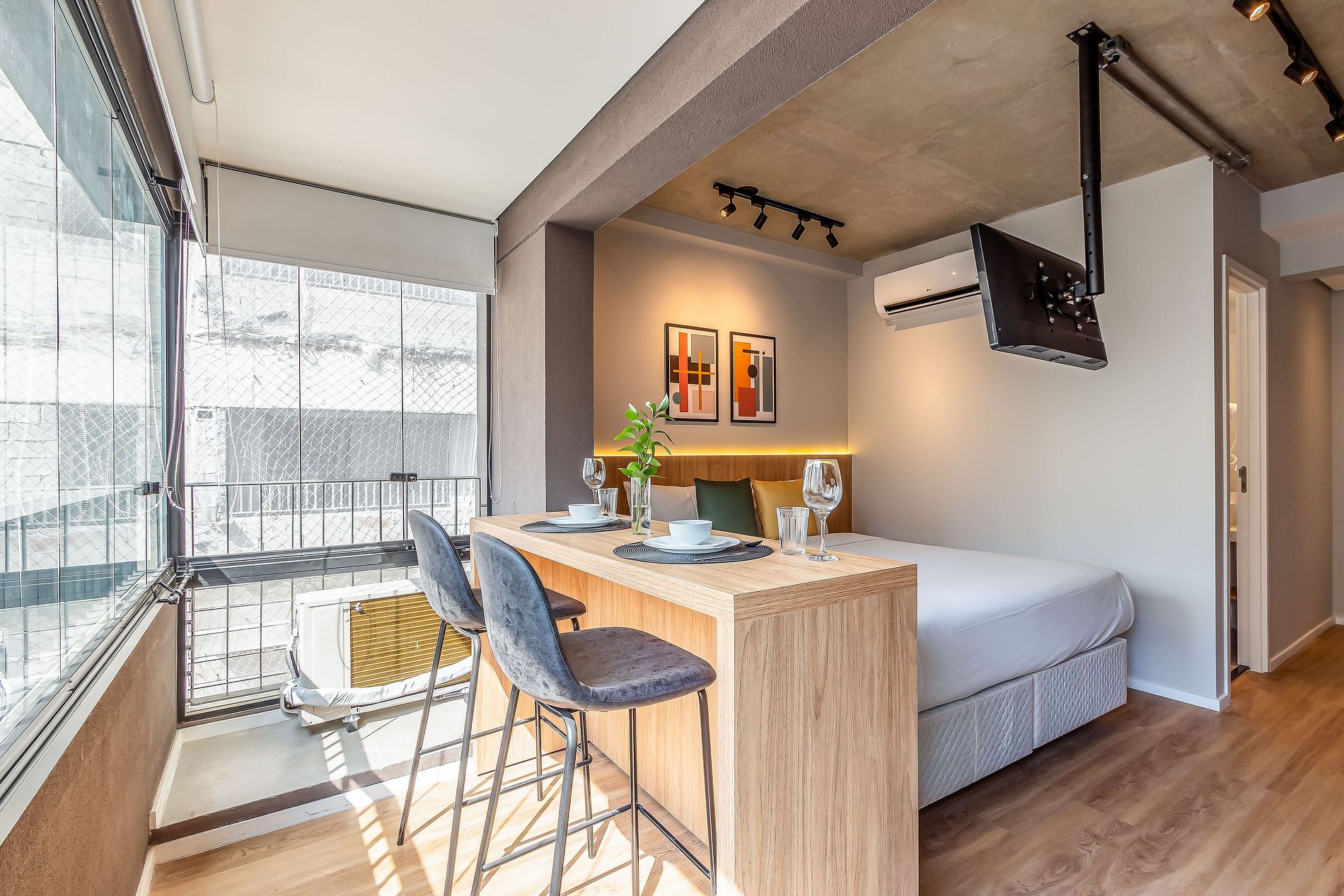 Aproveite o melhor de São Paulo ficando nesse novíssimo studio, localizado no coração dos Jardins, região nobre da cidade. O apartamento é completo, com enxoval de cama e banho, além de utensílios e equipamentos de cozinha, tudo para que se sinta em casa.