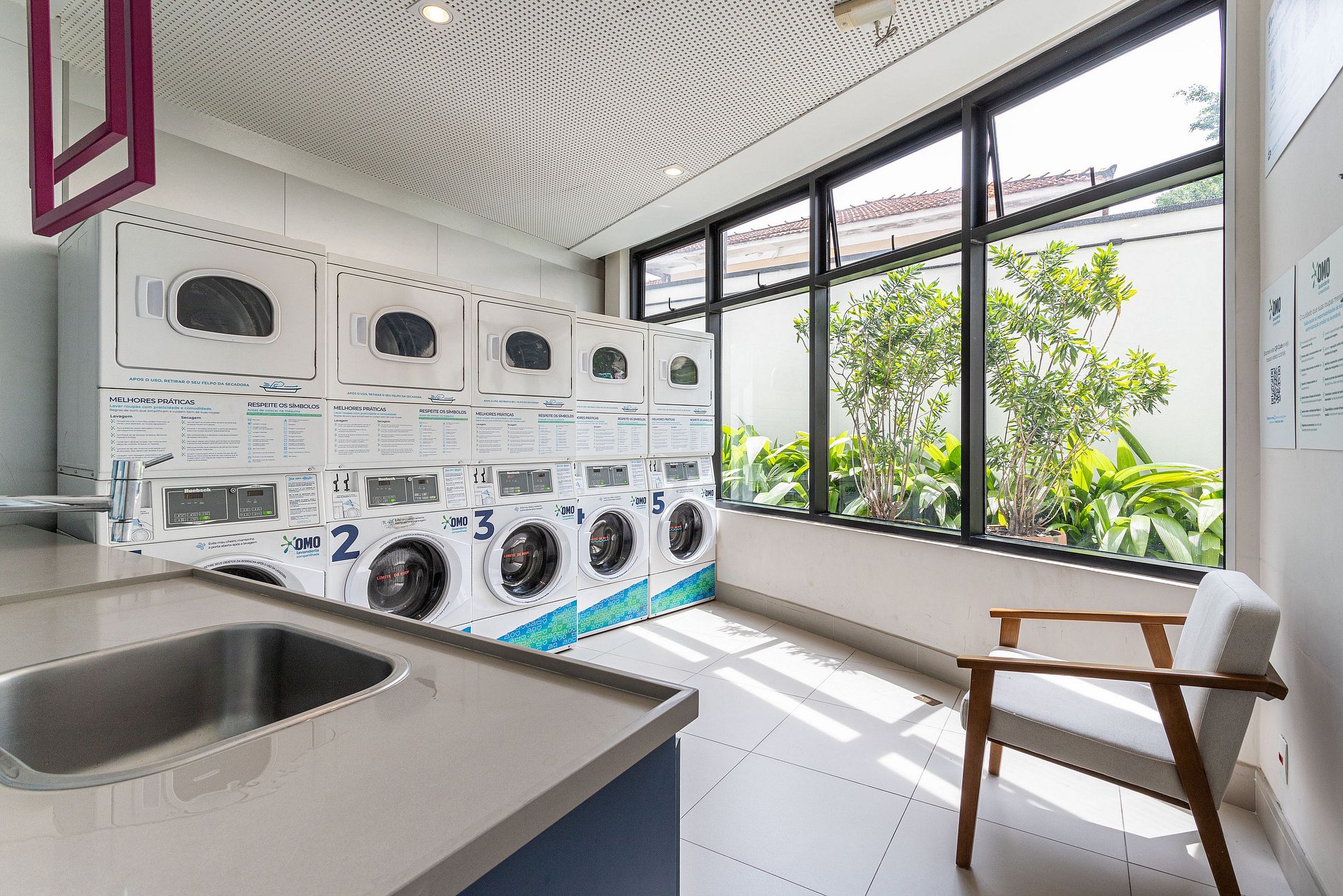 - Lavanderia compartilhada 24h (Andar térreo, serviço pago, aceita apenas sabão e amaciante líquidos, não tem produto incluso, acesso através do app)