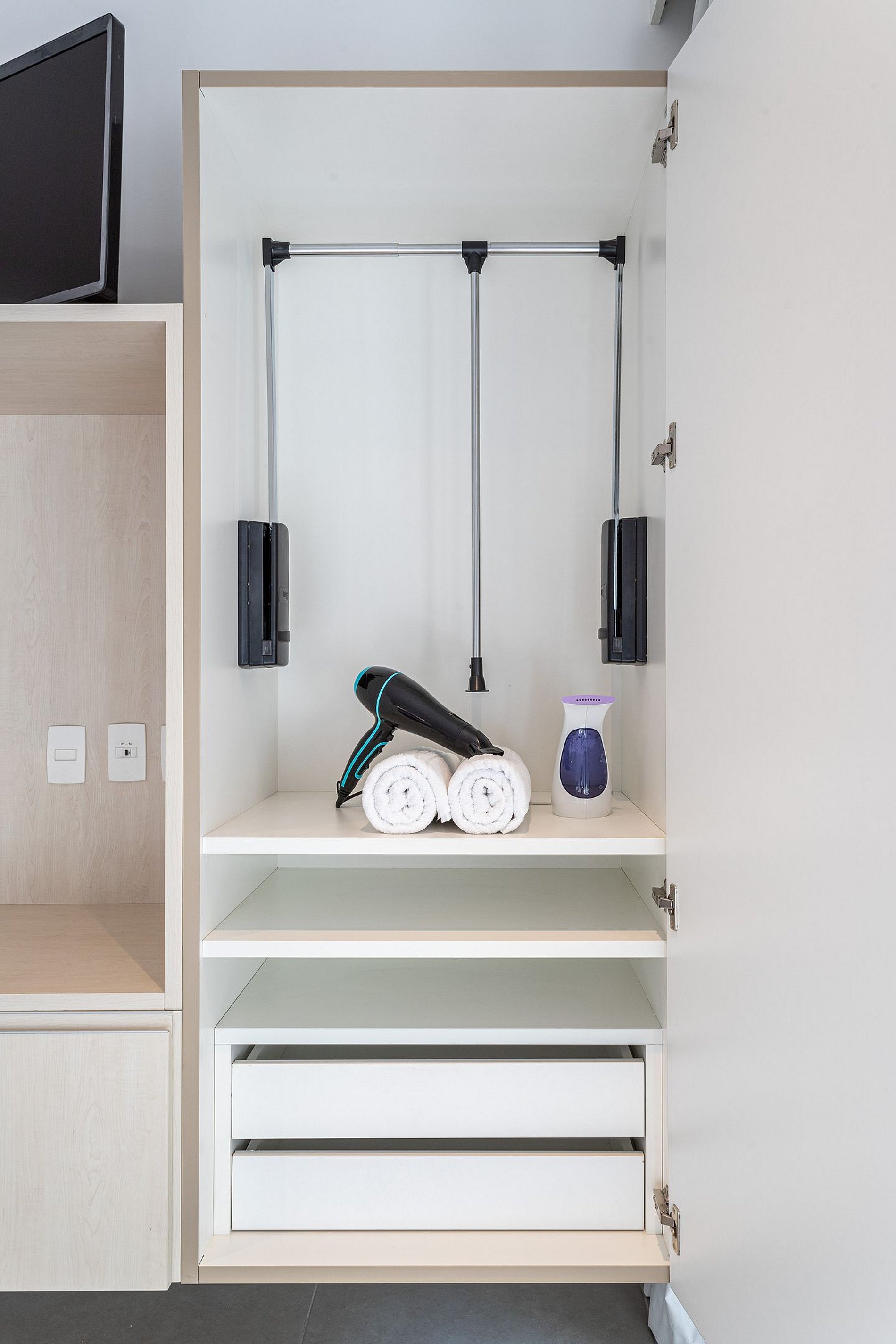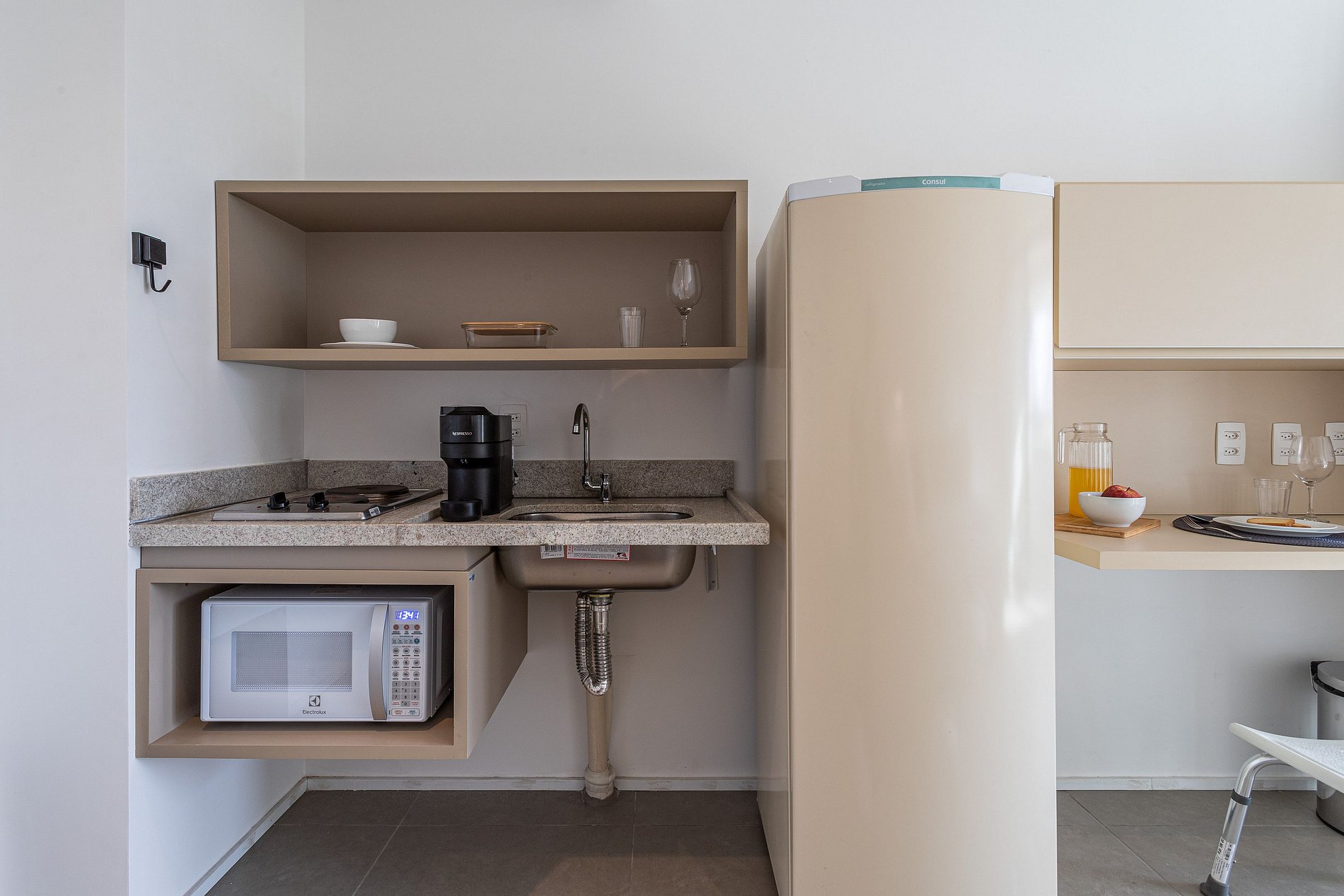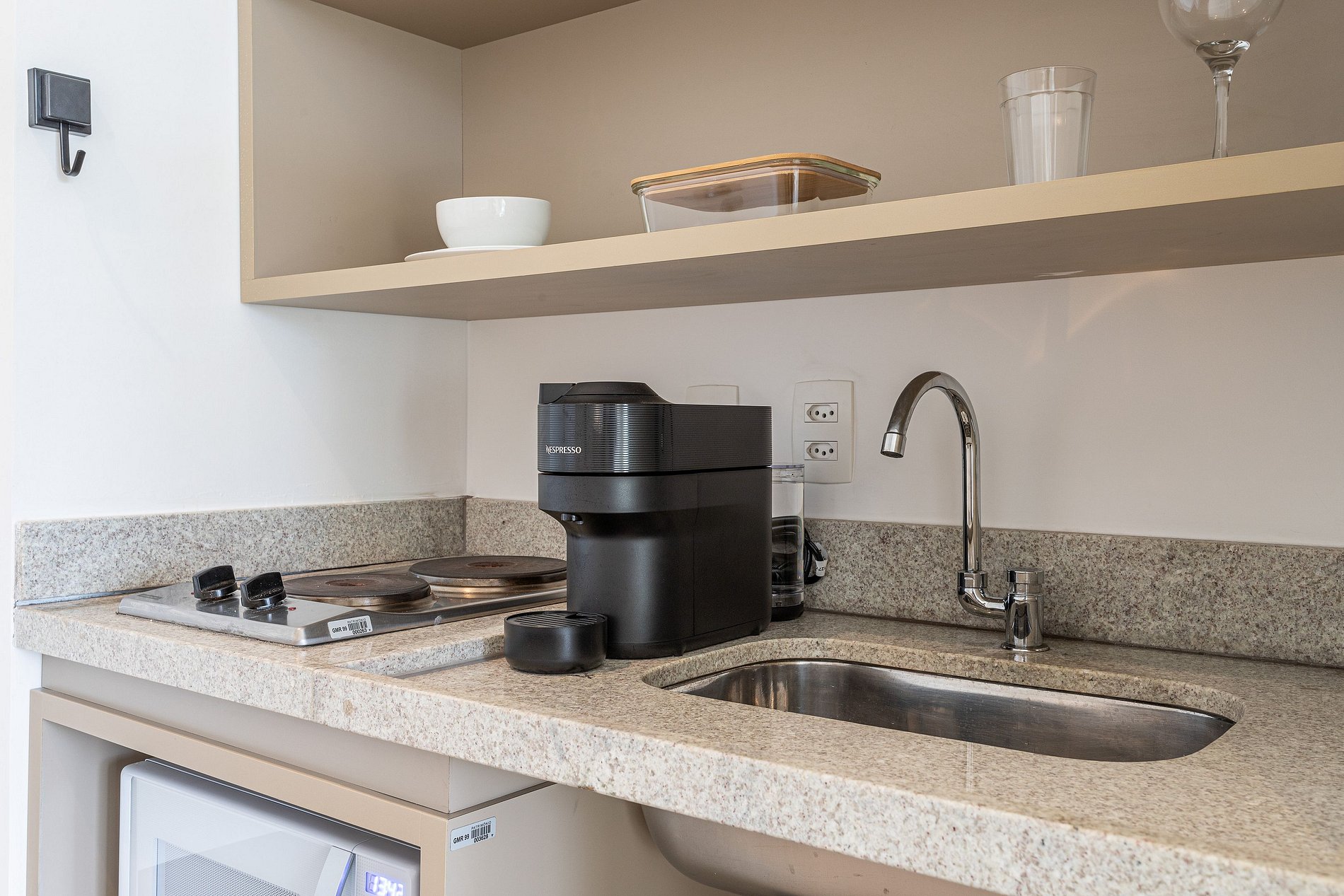 - A decoração e as amenidades dos apartamentos podem ter variações como cafeteira (pó x cápsula), ferro de passar x steamer, fogão x cooktop (com ou sem forno).