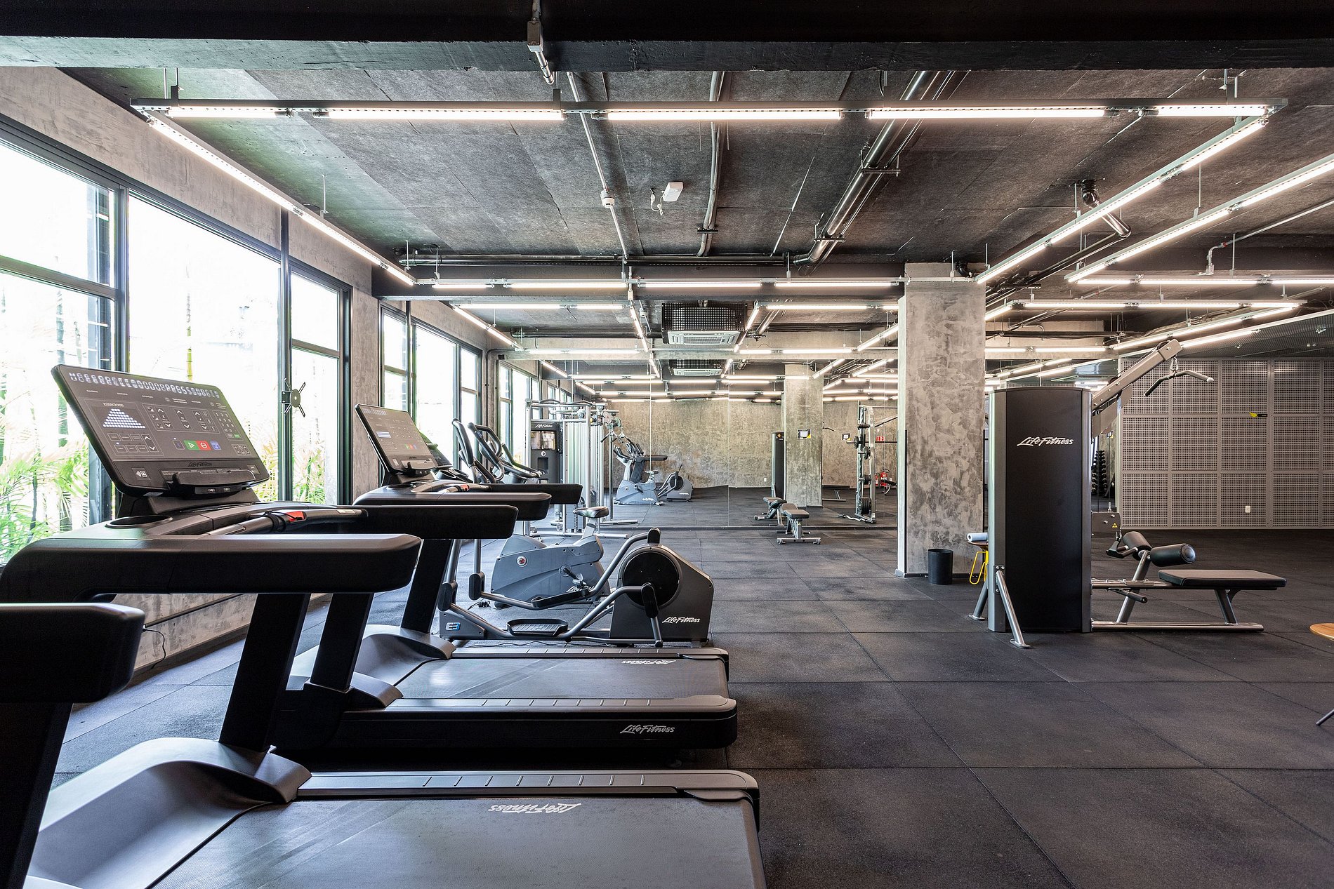 - Academia (06h às 22h, andar térreo, equipada com esteiras, bicicleta ergométrica, banco reclinável e alguns equipamentos de musculação)