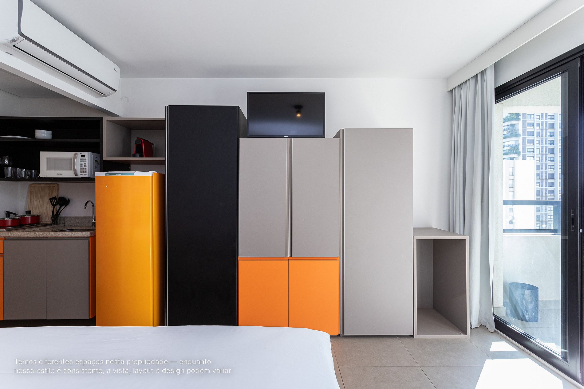 *A decoração e as amenidades dos apartamentos podem ter variações como cafeteira (pó x cápsula), ferro de passar x steamer, fogão x cooktop (com ou sem forno).