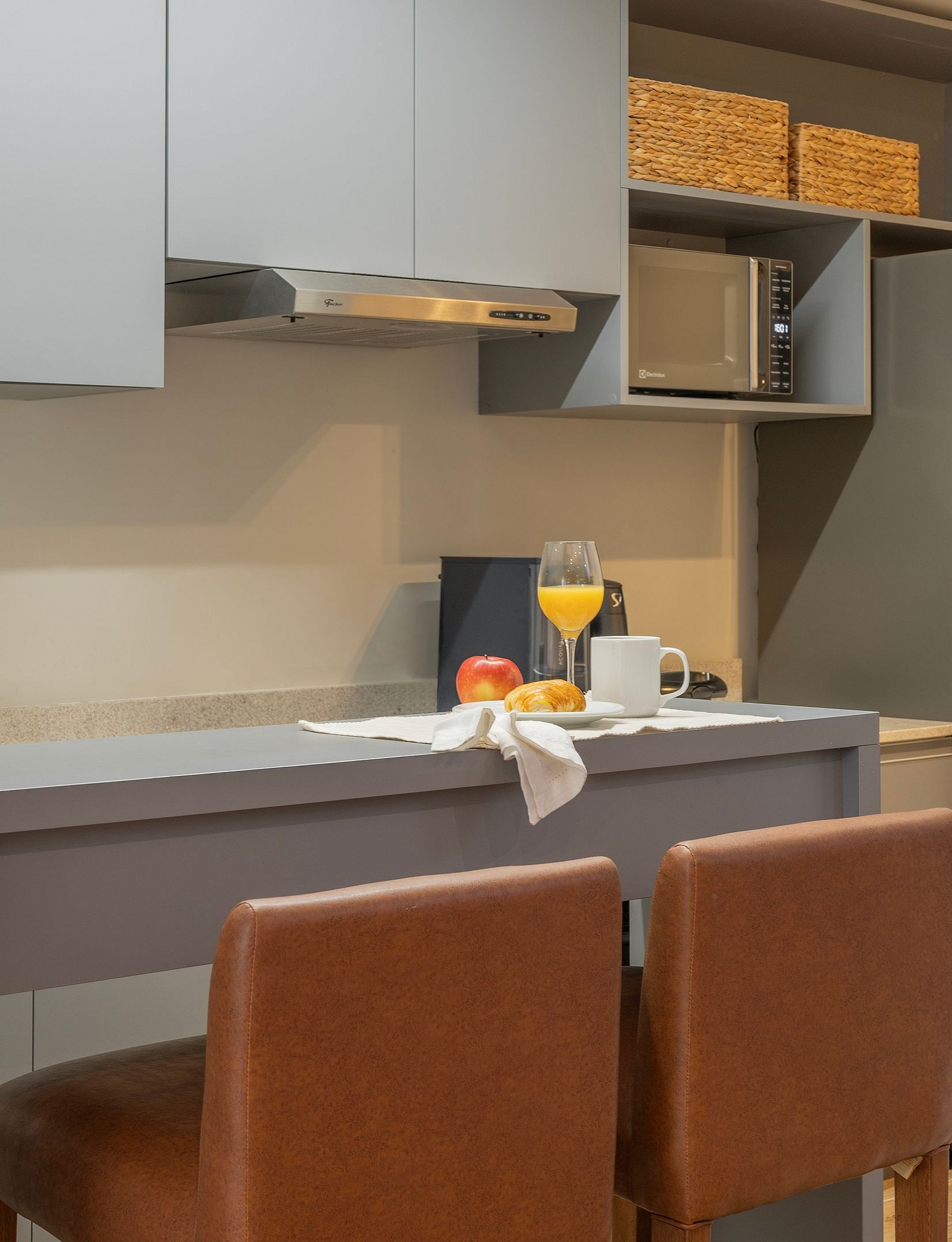 *A decoração e as amenidades dos apartamentos podem ter variações como ferro de passar x steamer, fogão x cooktop (com ou sem forno).