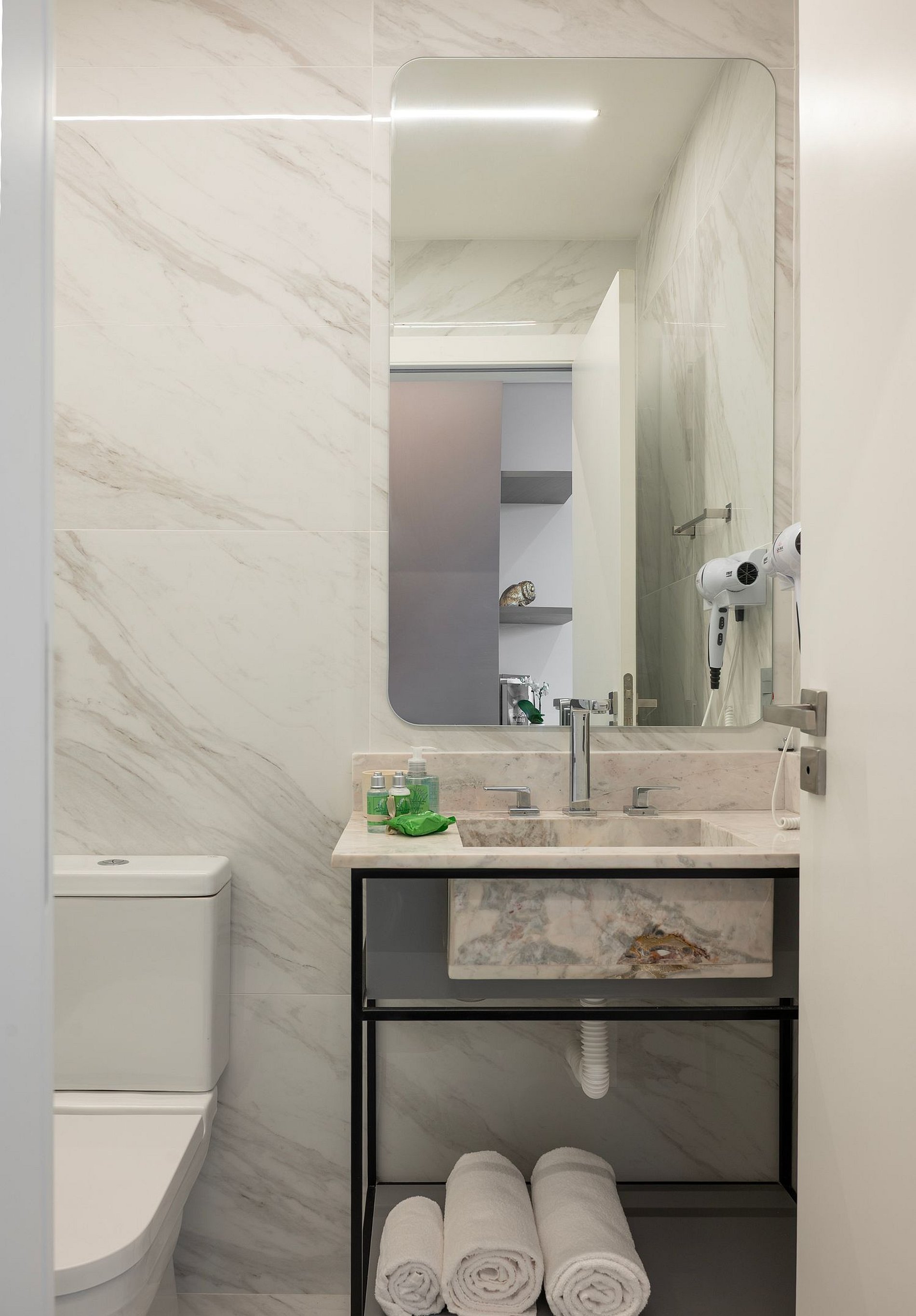 - Amenidades essenciais (cortesia na chegada, sem reposição durante a estadia)