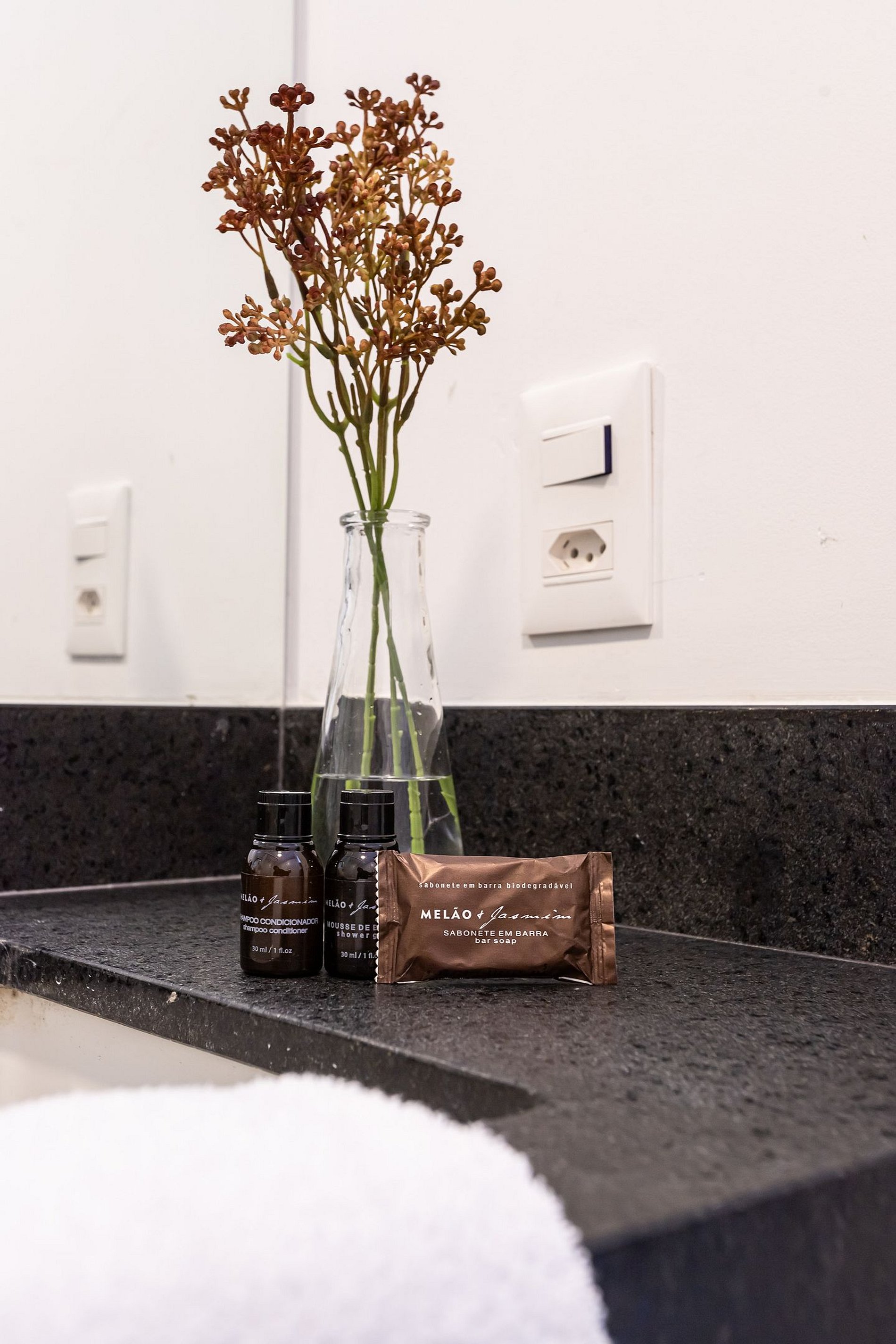- Amenidades essenciais (cortesia na chegada, sem reposição durante a estadia)