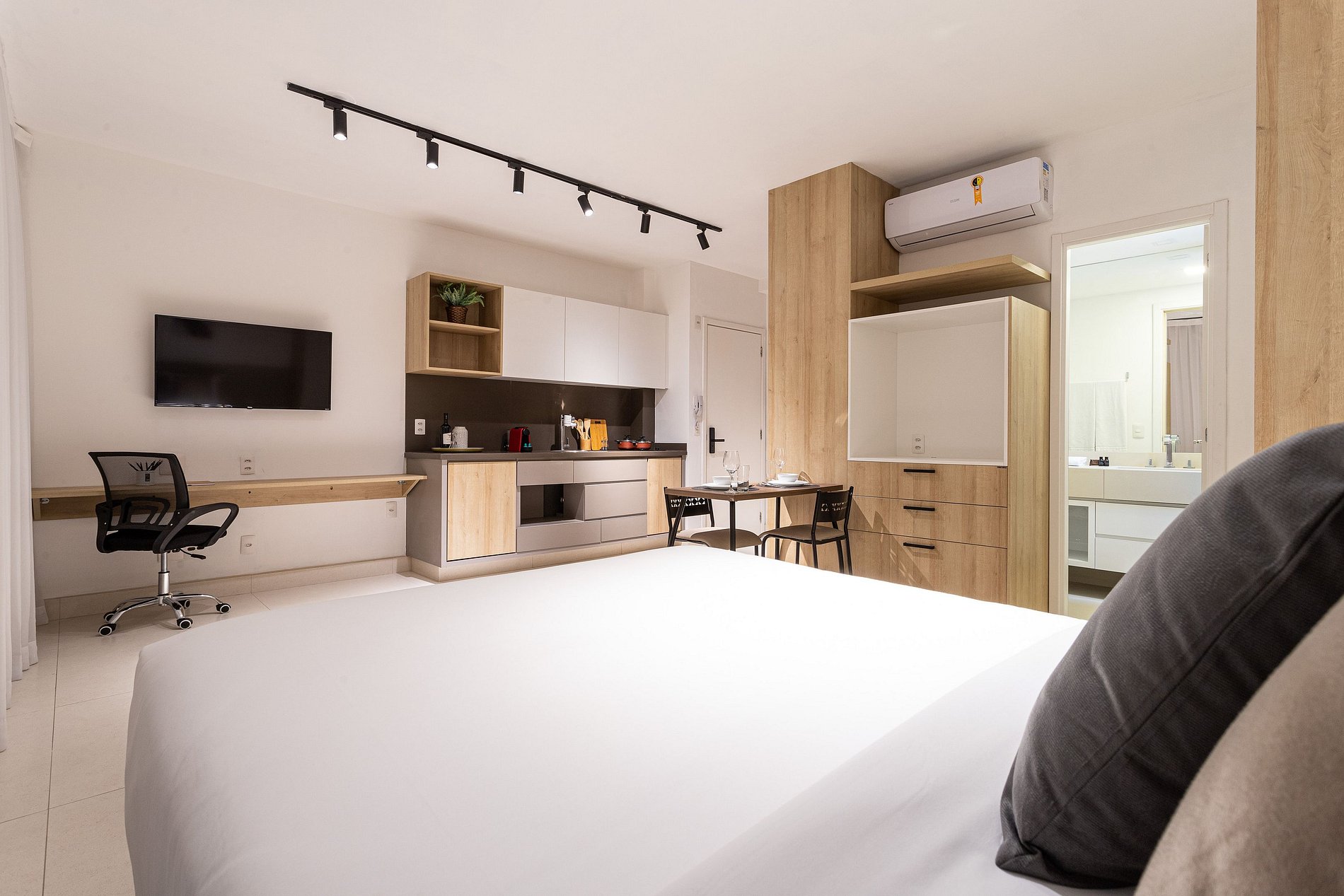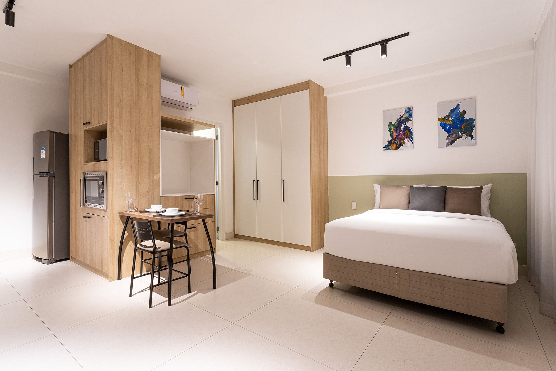 *A decoração e as amenidades dos apartamentos podem ter variações como cafeteira (pó x cápsula), ferro de passar x steamer, fogão x cooktop (com ou sem forno).