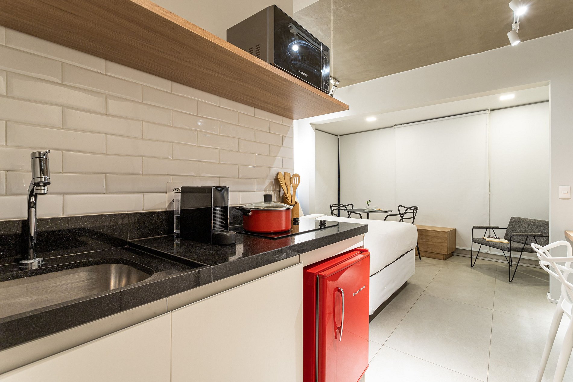 *A decoração e as amenidades dos apartamentos podem ter variações como cafeteira (pó x cápsula), ferro de passar x steamer, fogão x cooktop (com ou sem forno).