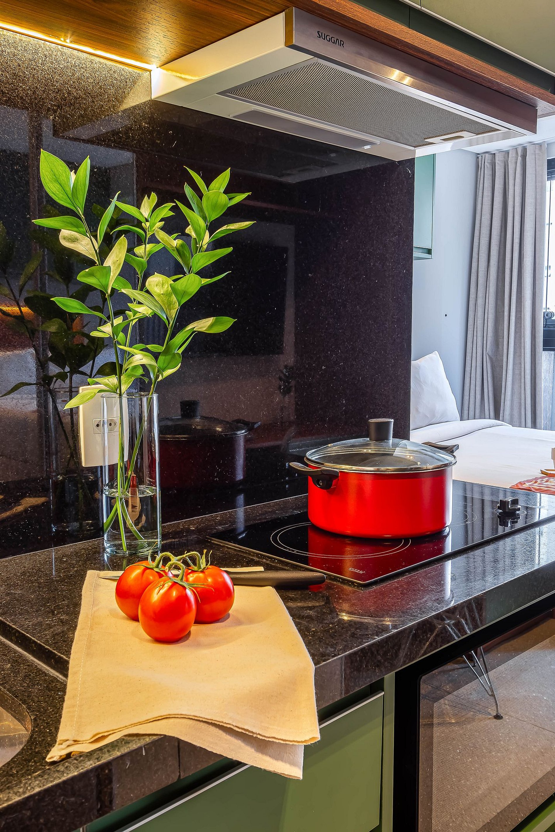 *A decoração e as amenidades dos apartamentos podem ter variações como cafeteira (pó x cápsula), ferro de passar x steamer, fogão x cooktop (com ou sem forno).