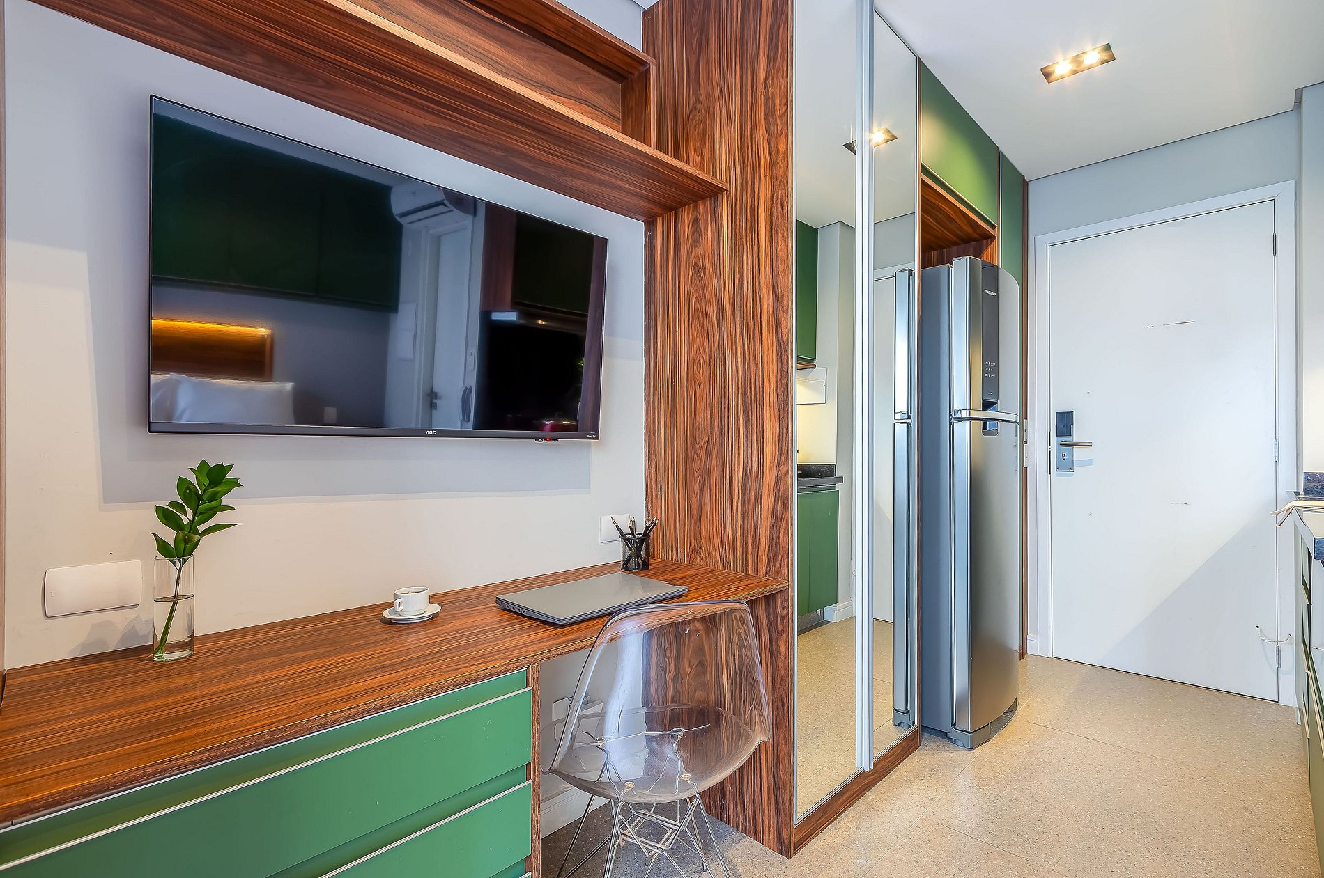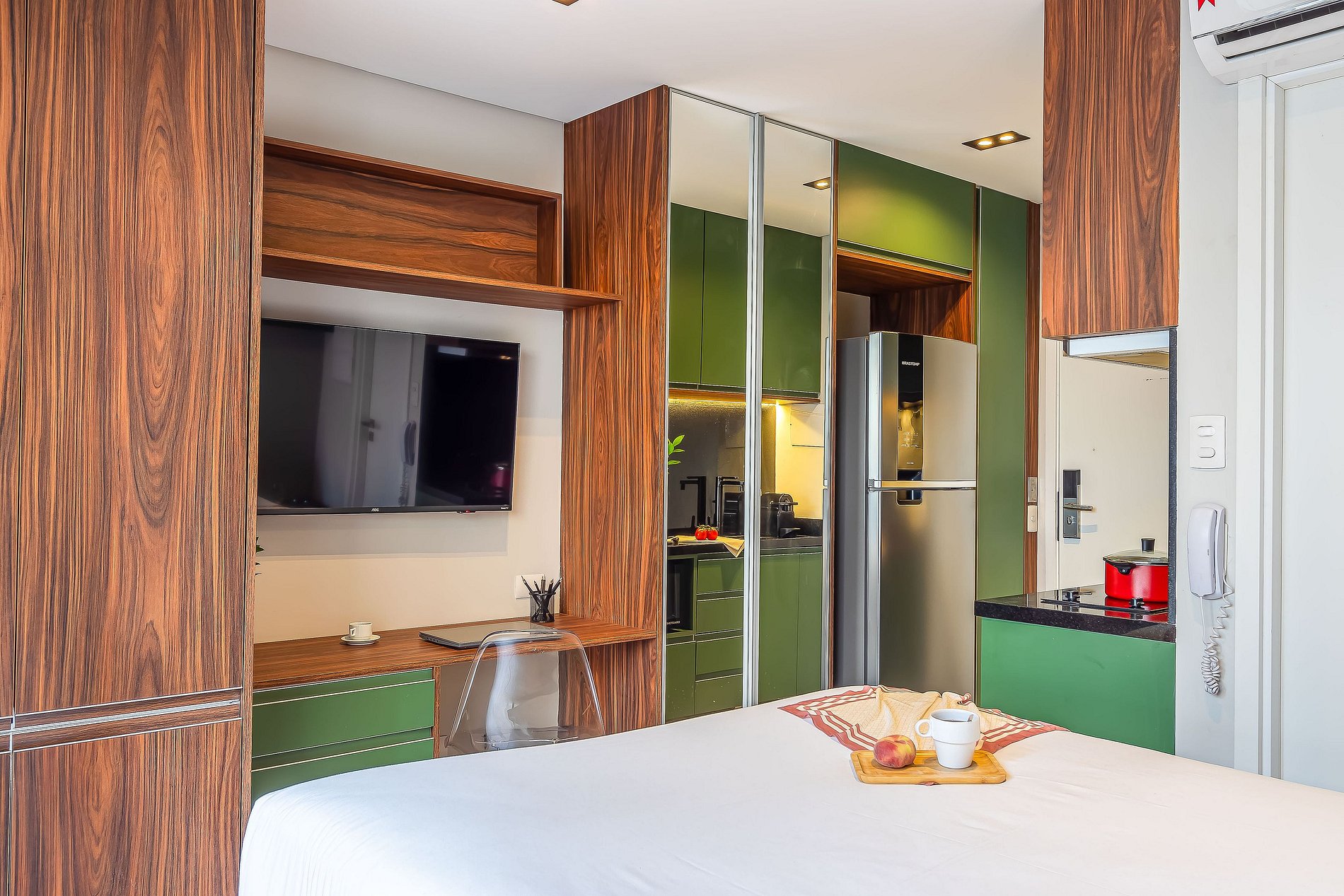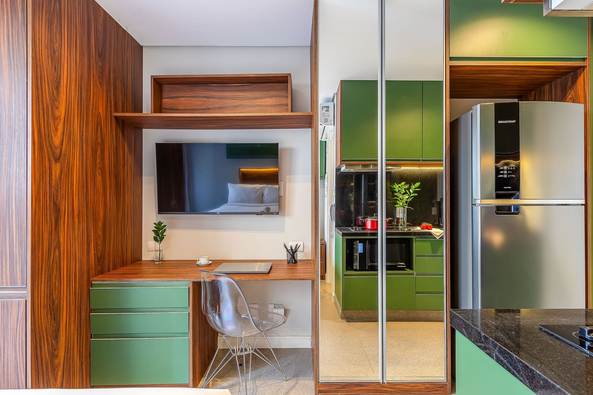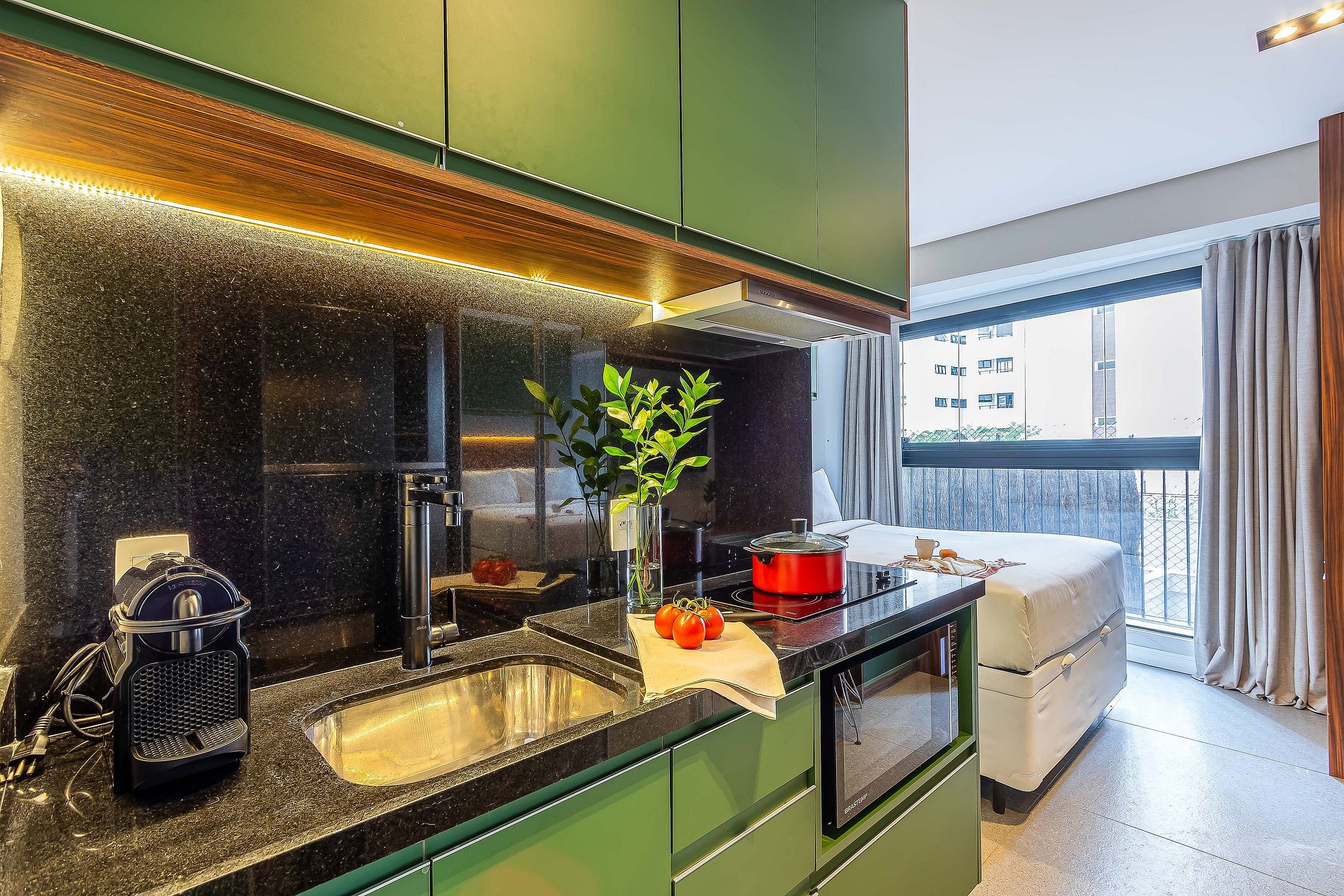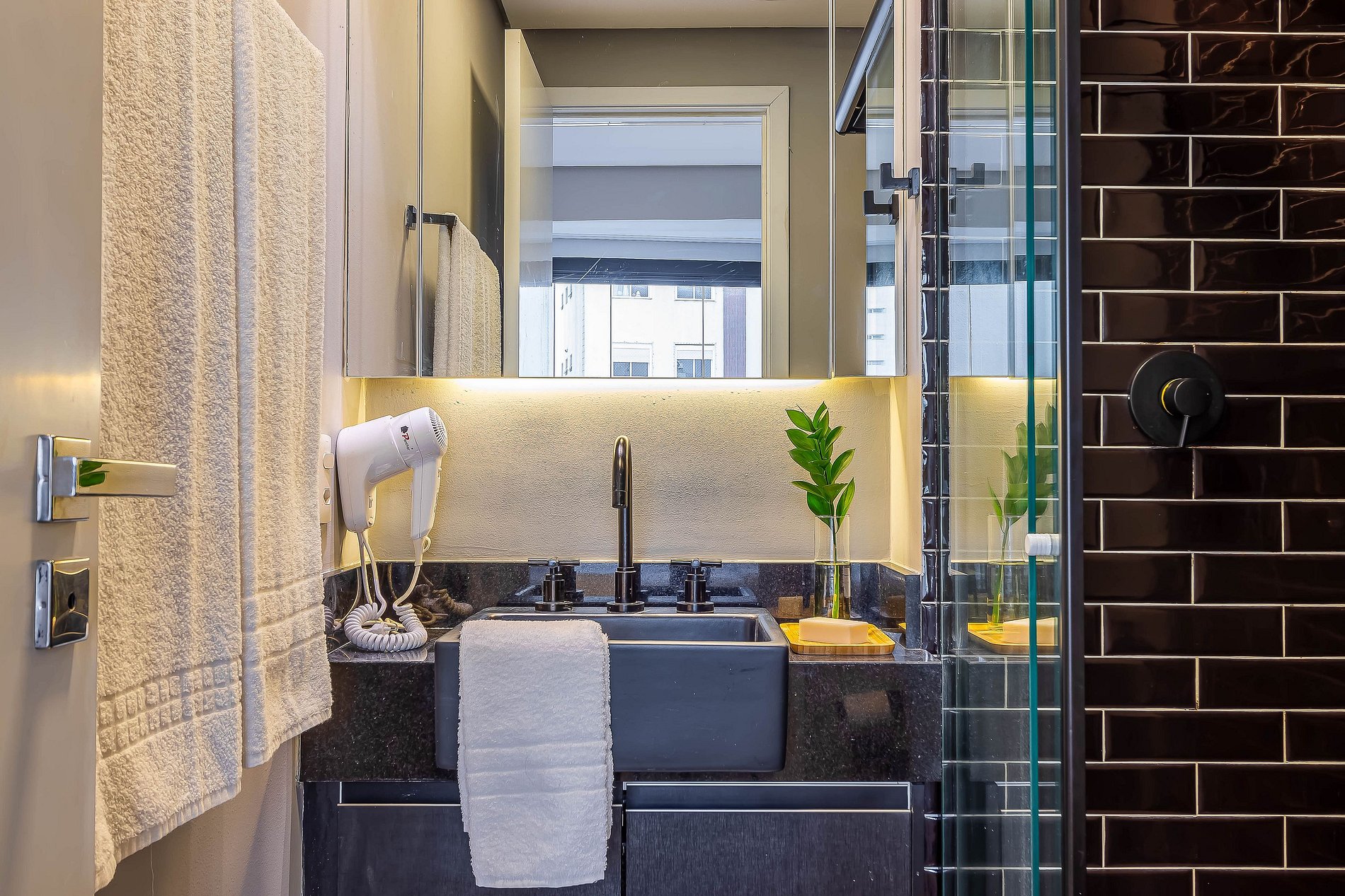 *A decoração e as amenidades dos apartamentos podem ter variações como cafeteira (pó x cápsula), ferro de passar x steamer, fogão x cooktop (com ou sem forno).