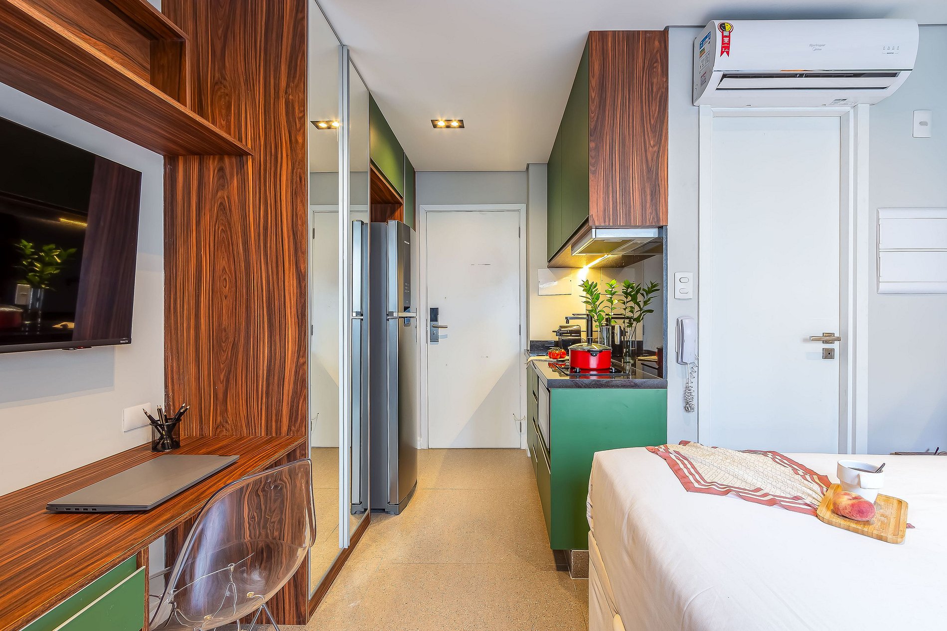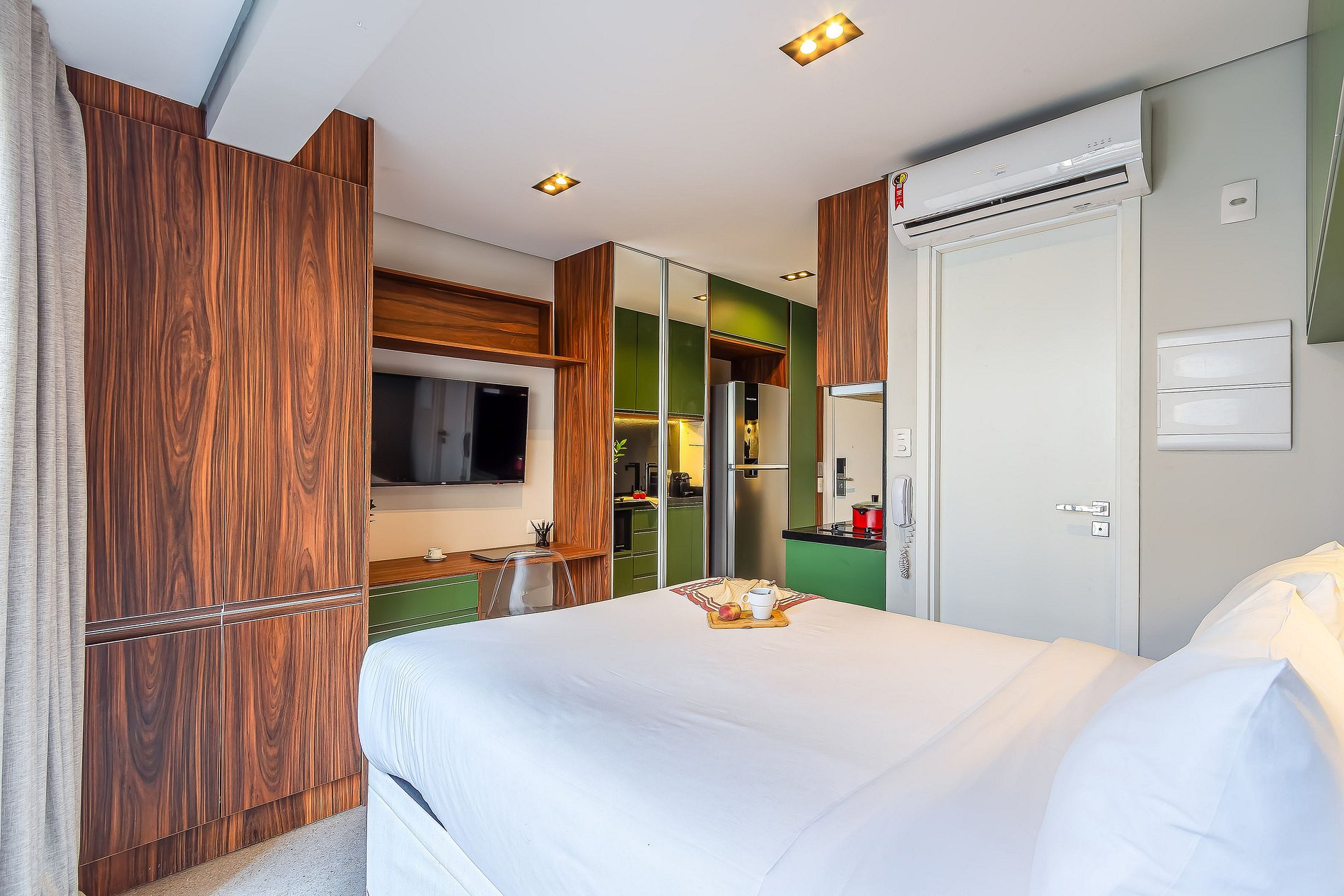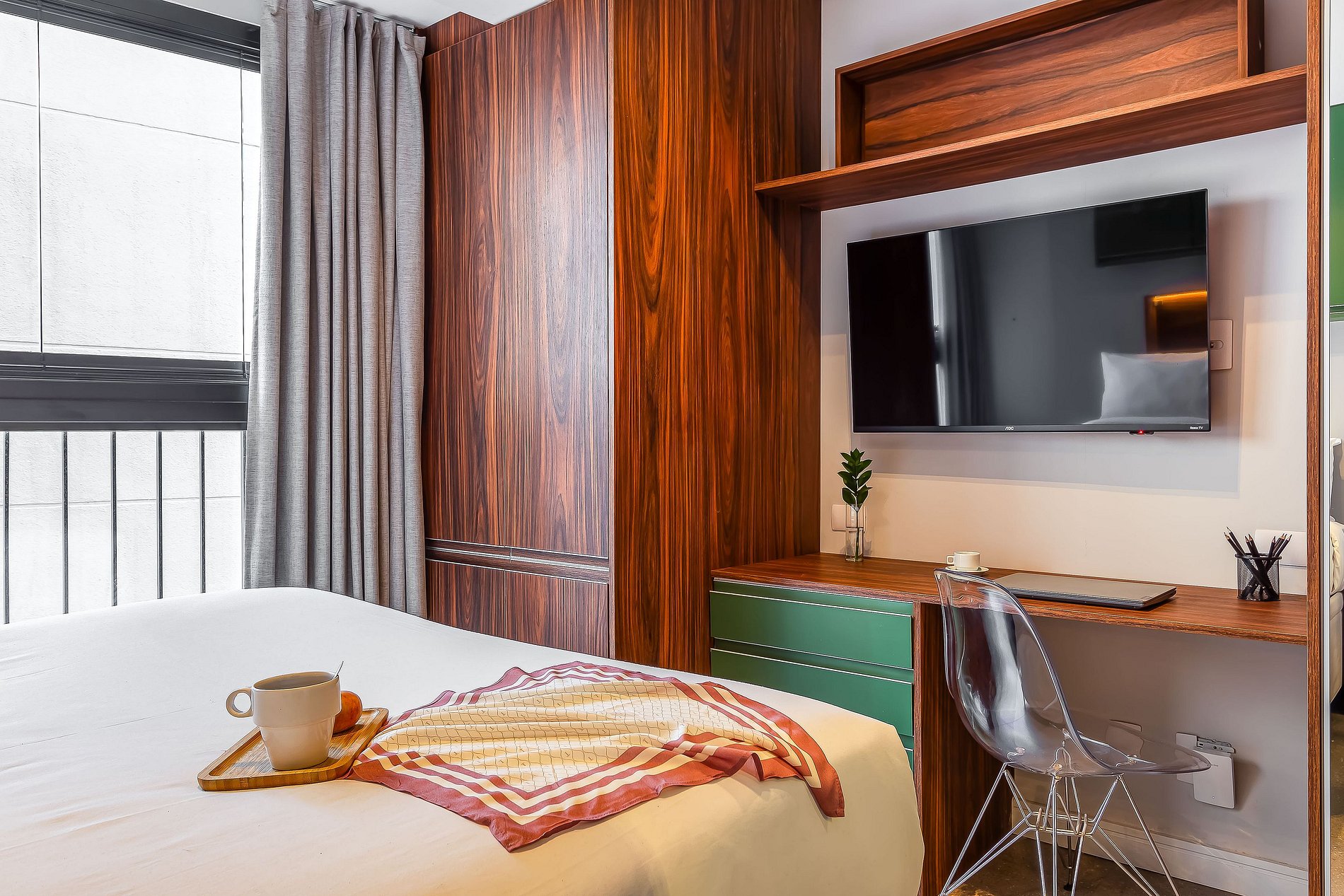 Você estará a alguns metros do parque Ibirapuera e ao lado, com fácil acesso à Av Faria Lima. Além disso, a Av. Santo Amaro e os principais restaurantes, teatros e atrações de São Paulo estão a alguns passos de distância. Nossos espaços são pensados para que você possa se sentir em casa, seja para uma estadia curta ou para morar por um tempo.