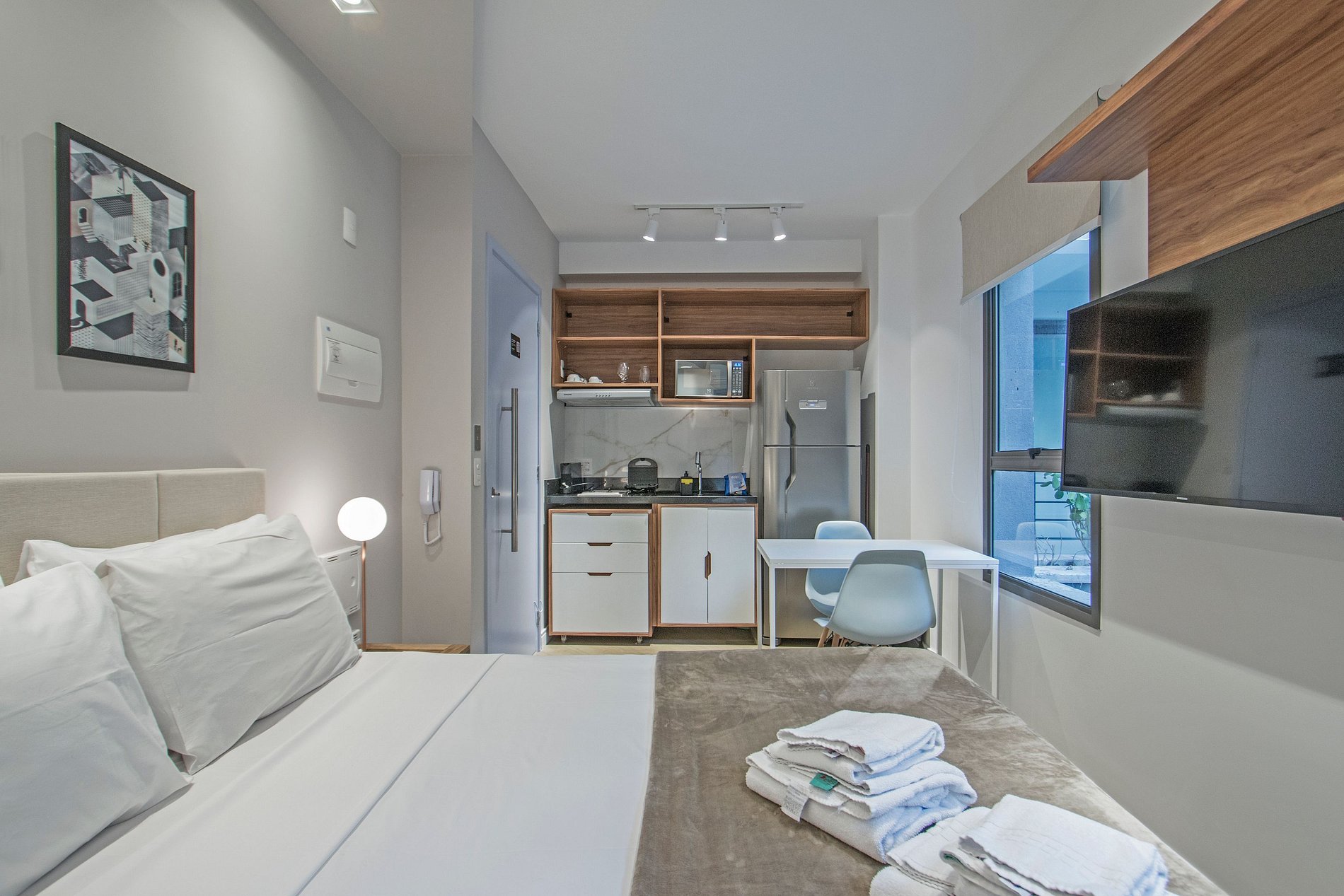 *A decoração e as amenidades dos apartamentos podem ter variações como cafeteira (pó x cápsula), ferro de passar x steamer, fogão x cooktop (com ou sem forno).