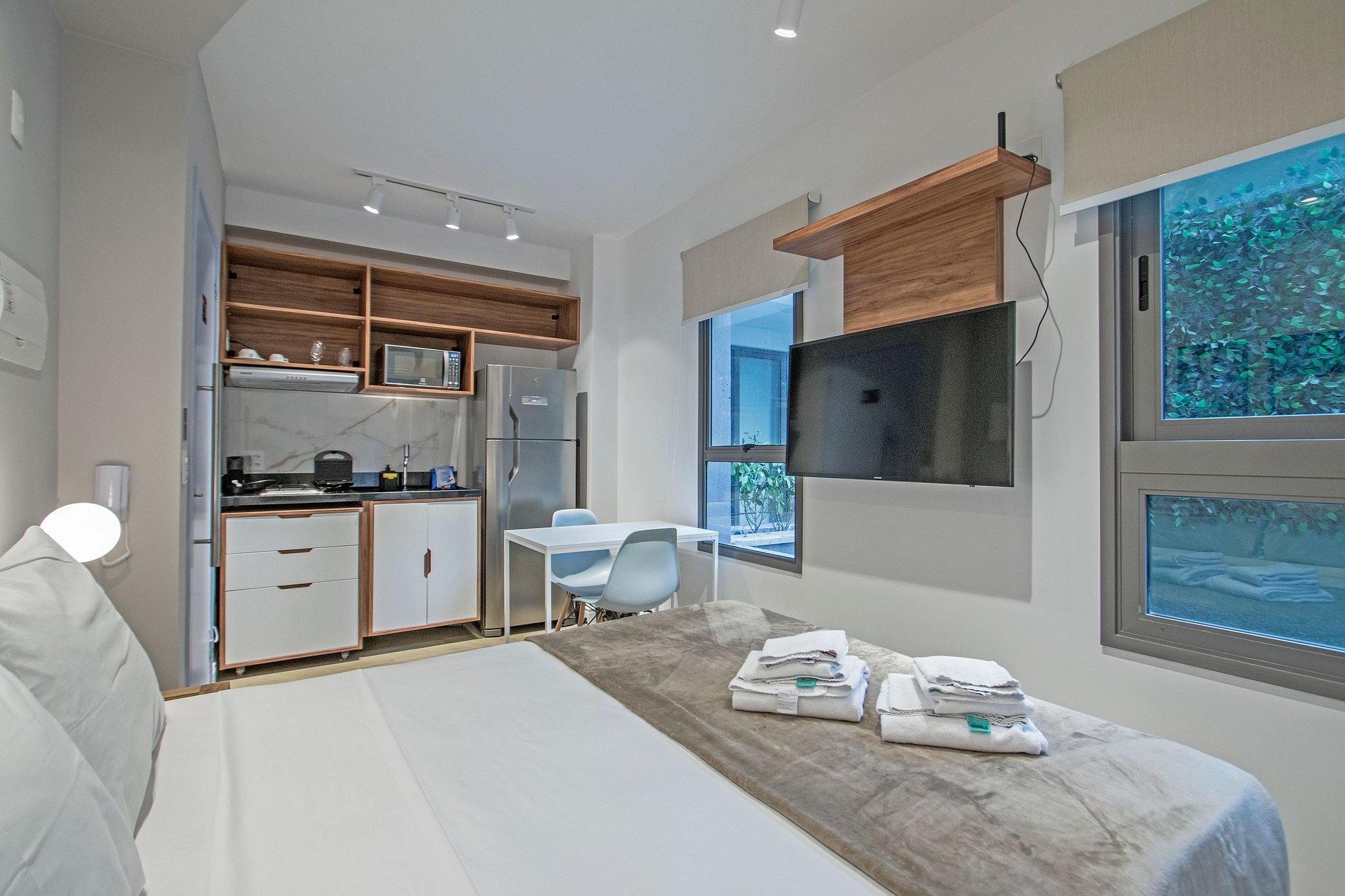 Você estará a alguns metros do parque Ibirapuera e ao lado, com fácil acesso à Av Faria Lima. Além disso, a Av. Santo Amaro e os principais restaurantes, teatros e atrações de São Paulo estão a alguns passos de distância. Nossos espaços são pensados para que você possa se sentir em casa, seja para uma estadia curta ou para morar por um tempo.