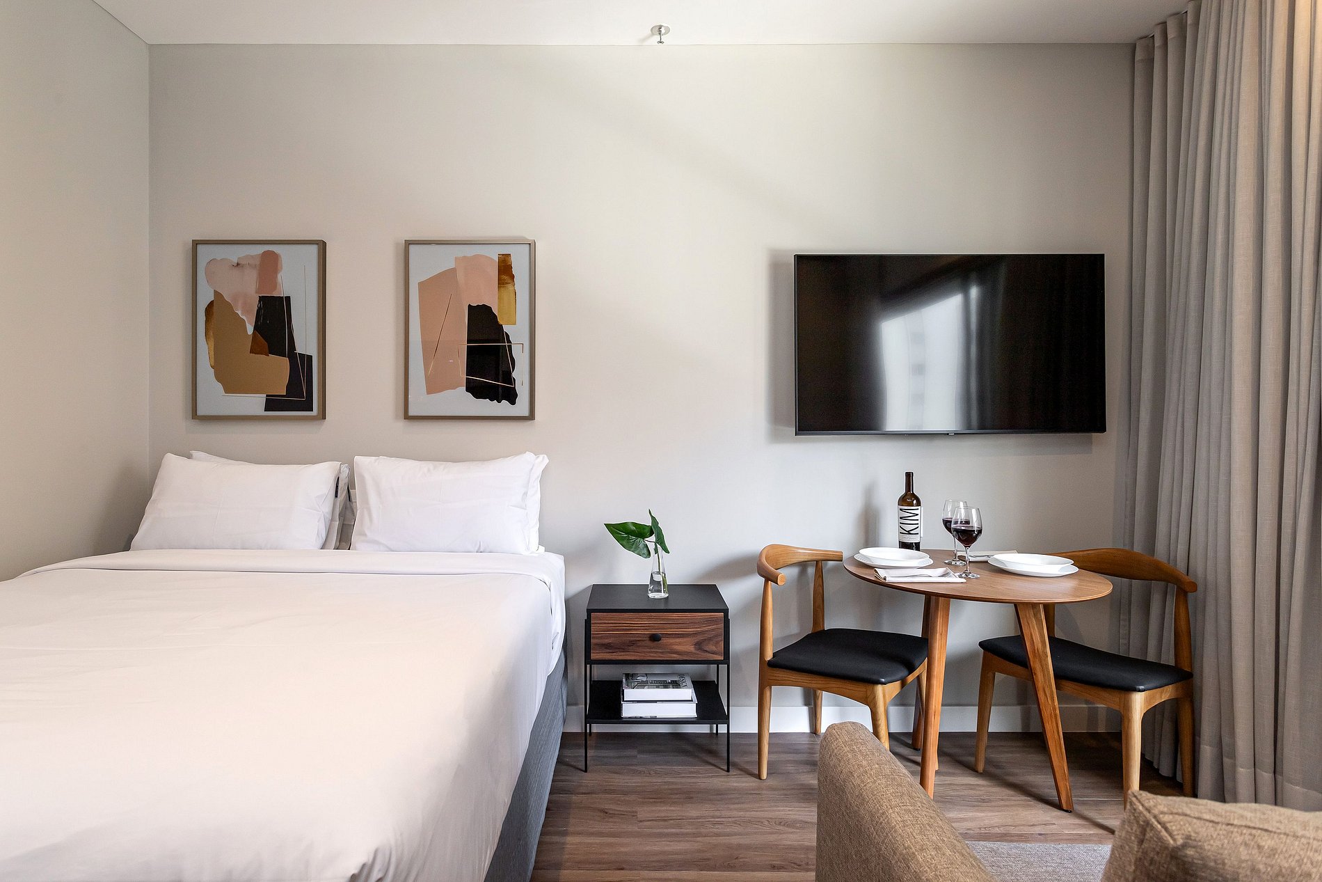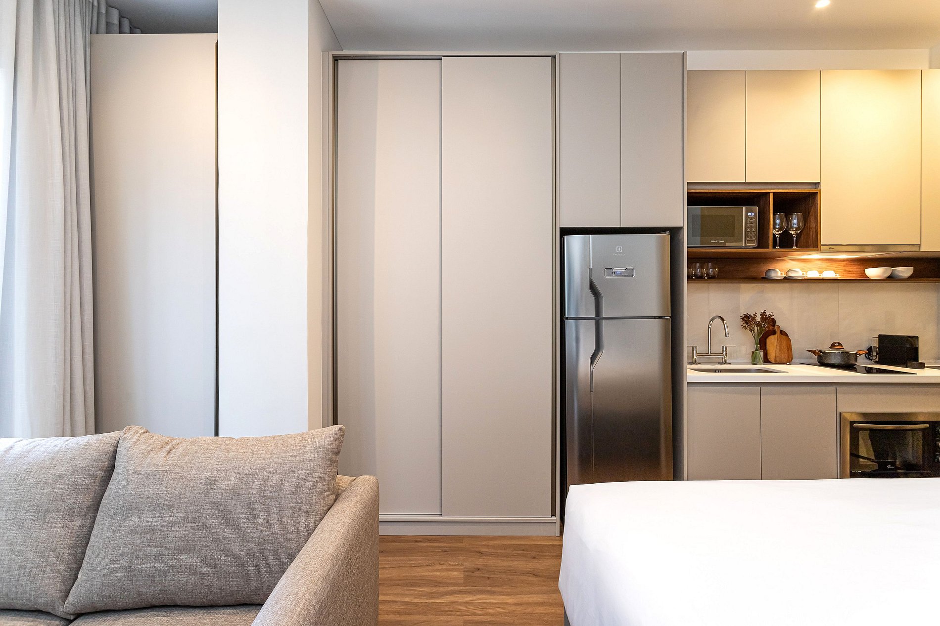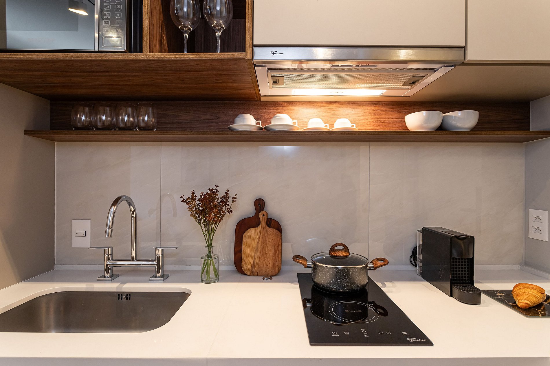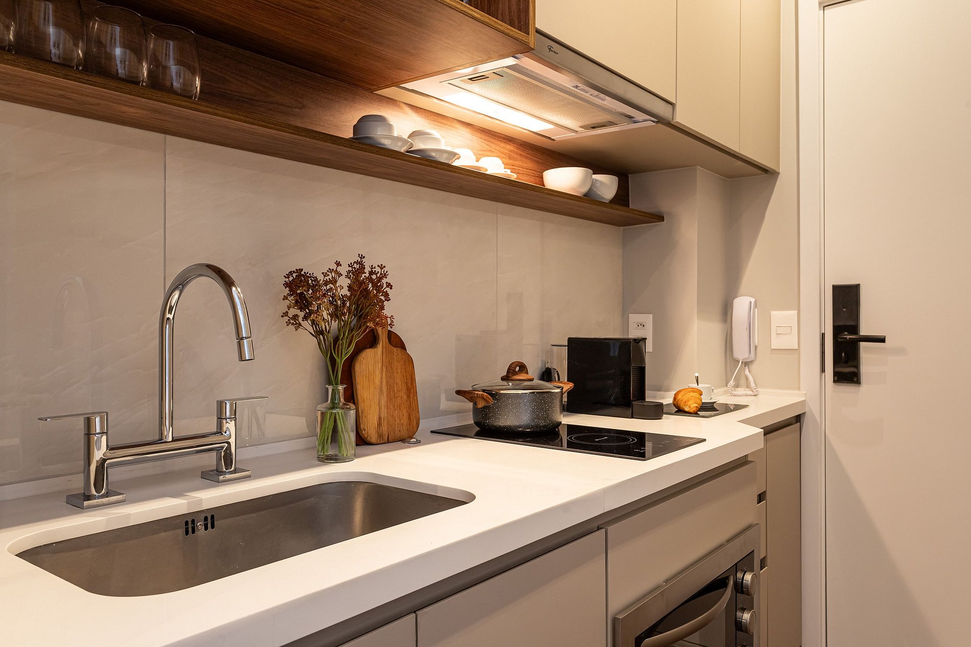 *A decoração e as amenidades dos apartamentos podem ter variações como cafeteira (pó x cápsula), ferro de passar x steamer, fogão x cooktop (com ou sem forno).