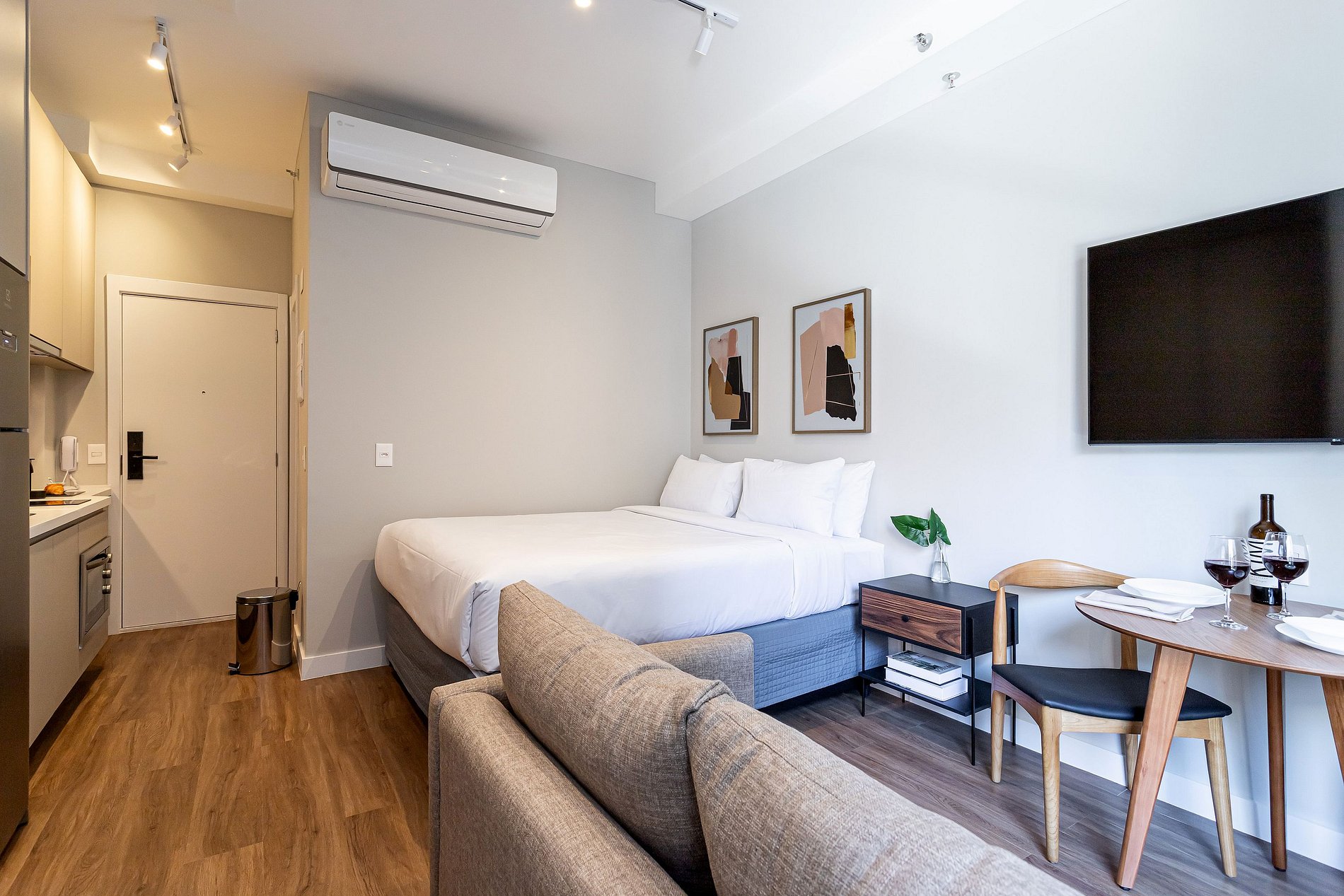 Desfrute do melhor de São Paulo hospedando-se neste estúdio moderno e aconchegante adaptado para pessoas com mobilidade reduzida no Ayra Higienópolis.