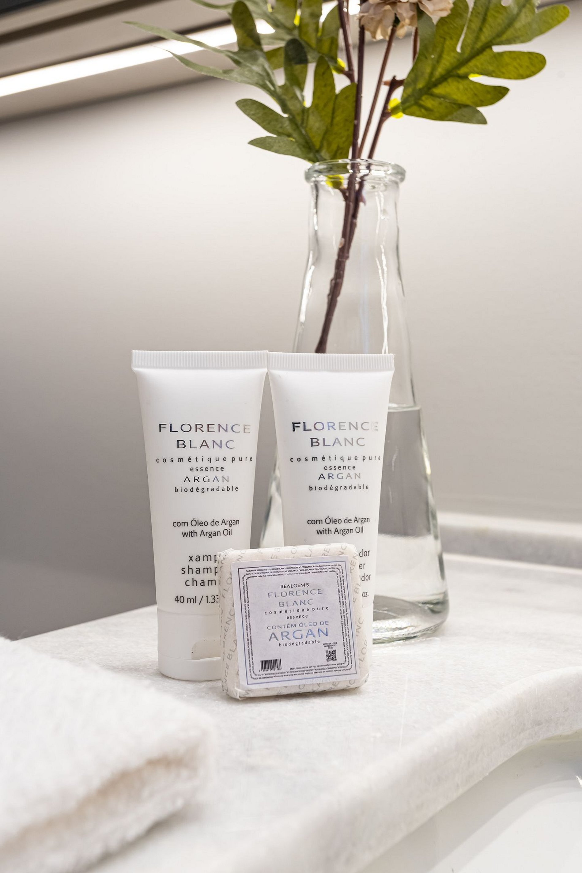 - Amenidades essenciais (cortesia na chegada, sem reposição durante a estadia)