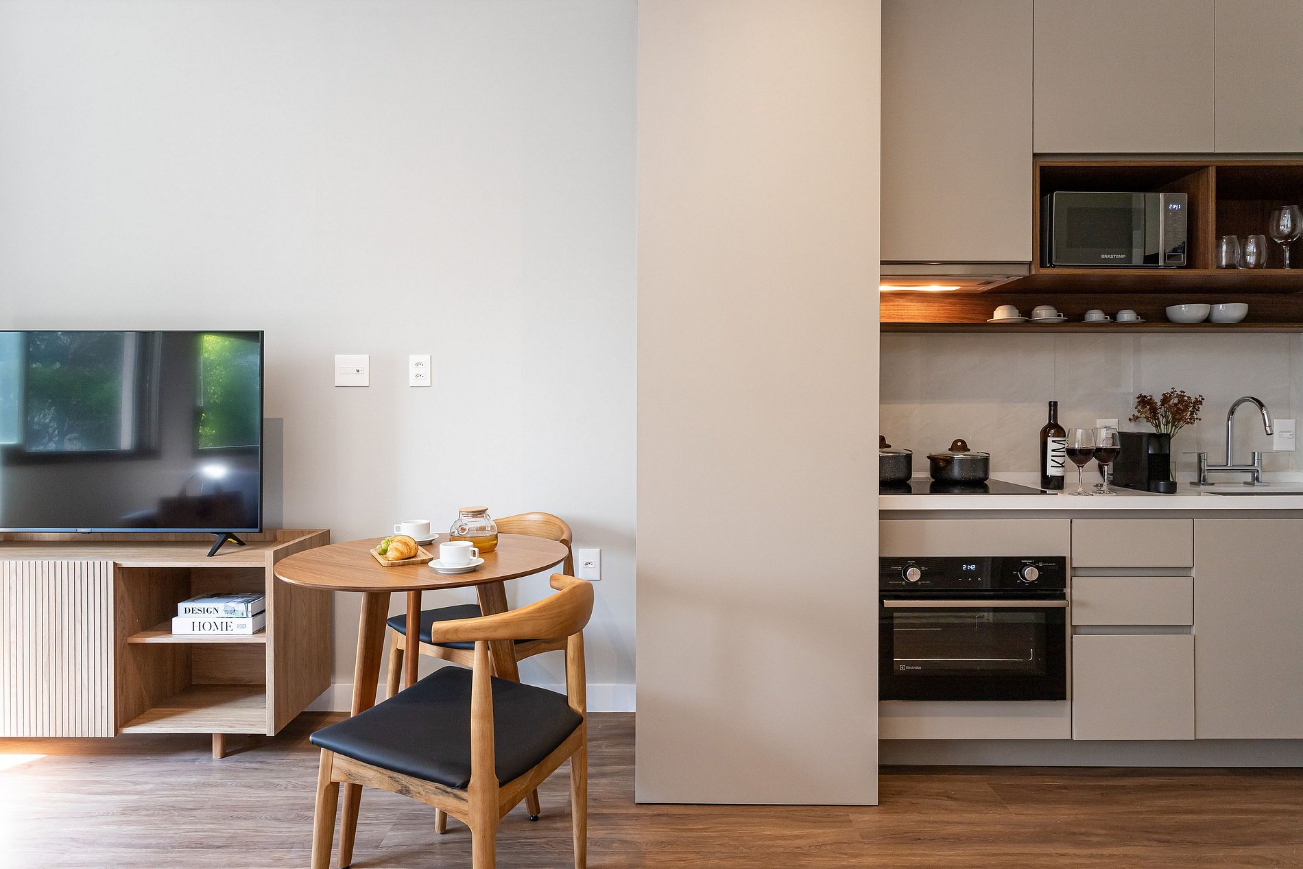 *A decoração e as amenidades dos apartamentos podem ter variações como cafeteira (pó x cápsula), ferro de passar x steamer, fogão x cooktop (com ou sem forno).
