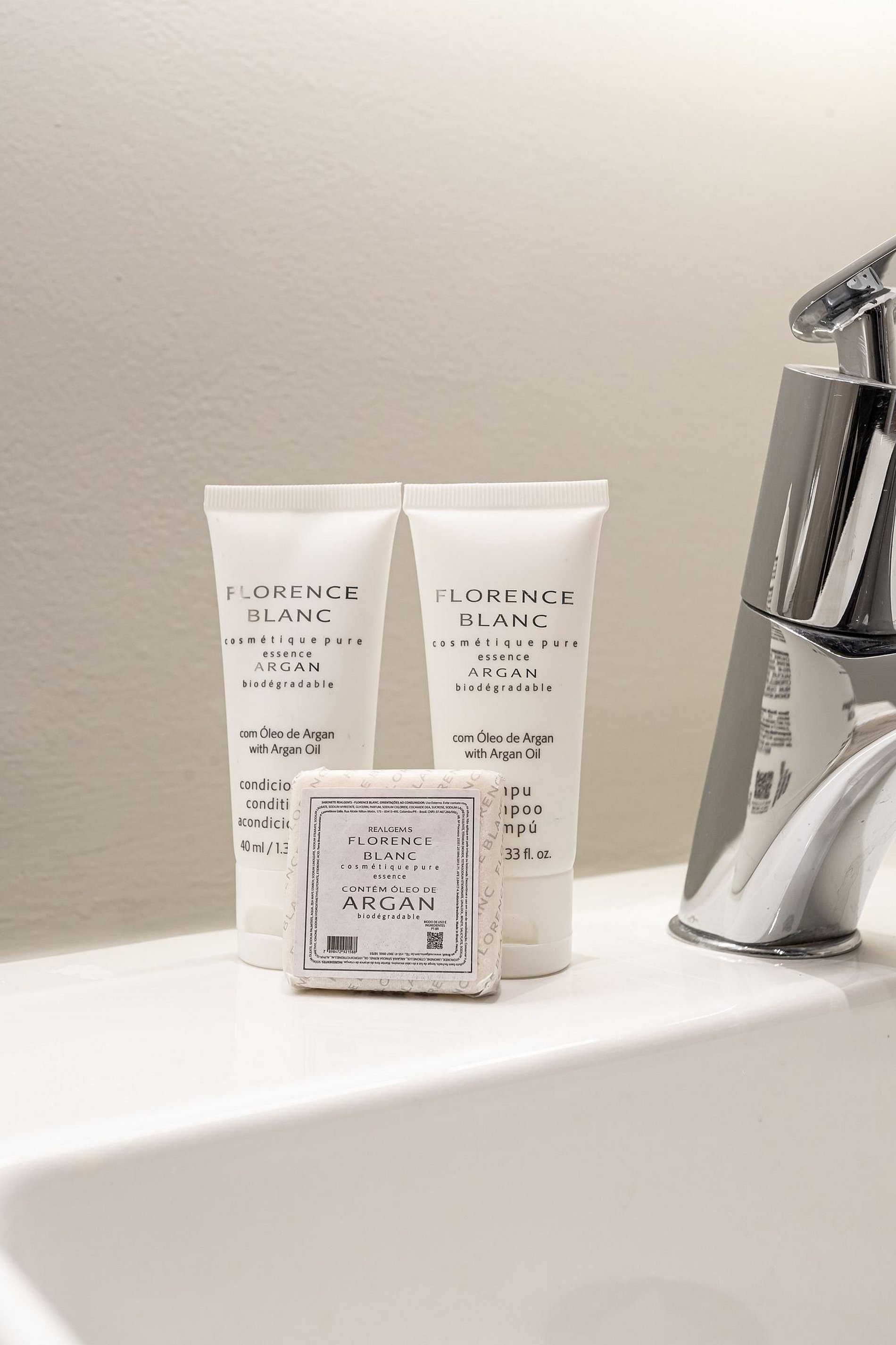 - Amenidades essenciais (cortesia na chegada, sem reposição durante a estadia)