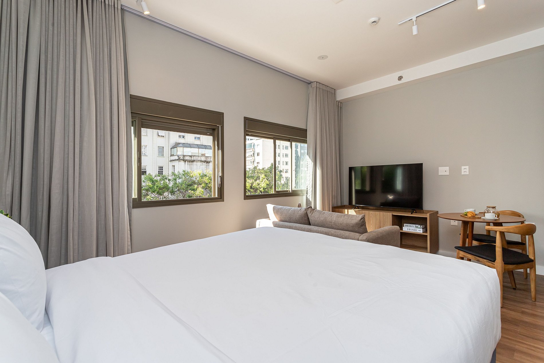 Desfrute do melhor de São Paulo hospedando-se neste estúdio moderno e aconchegante adaptado para pessoas com mobilidade reduzida no Ayra Higienópolis.