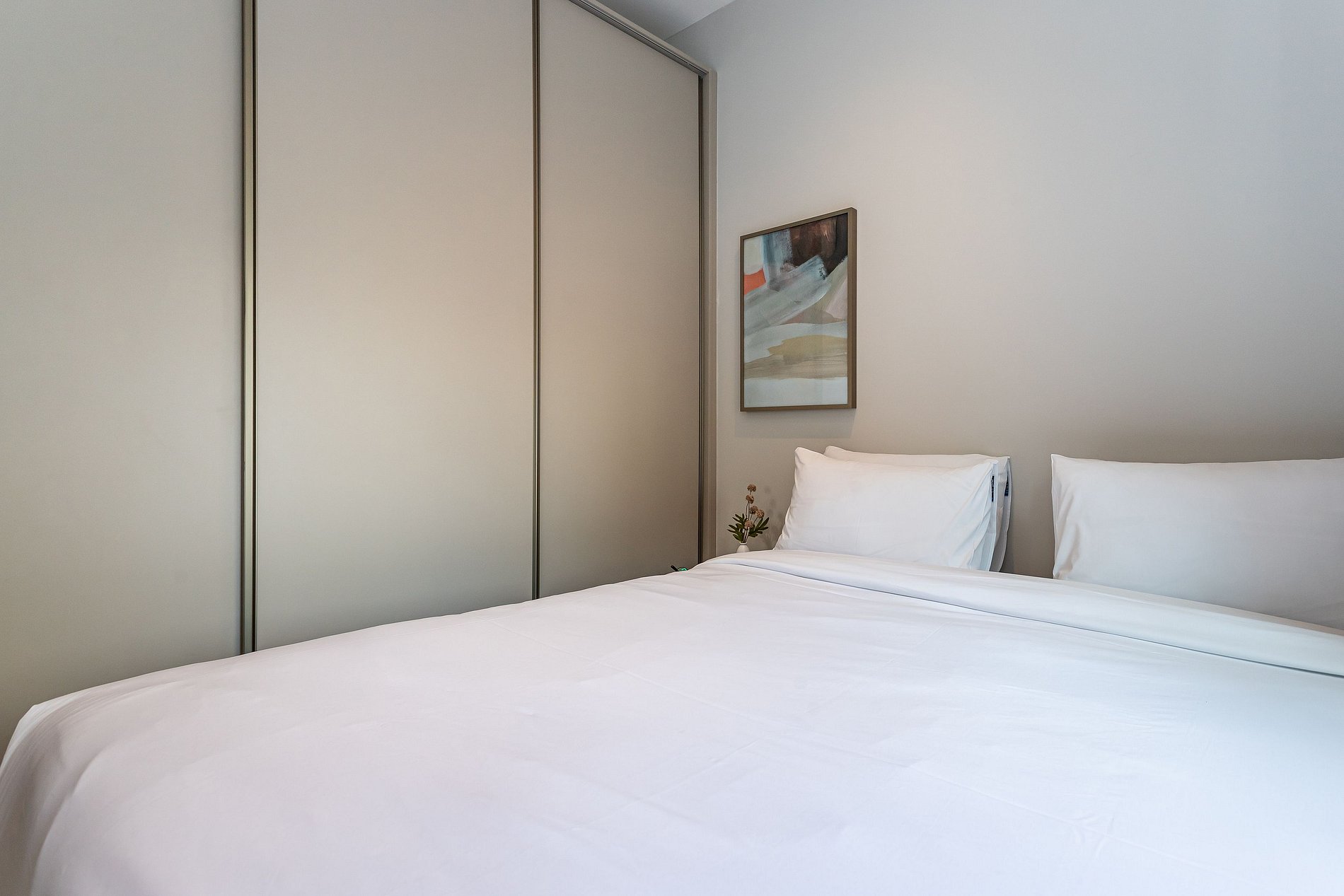O apto é equipado, com roupas de cama e banho, cozinha equipada para o preparo de refeições rápidas, ar-condicionado e fechadura eletrônica.