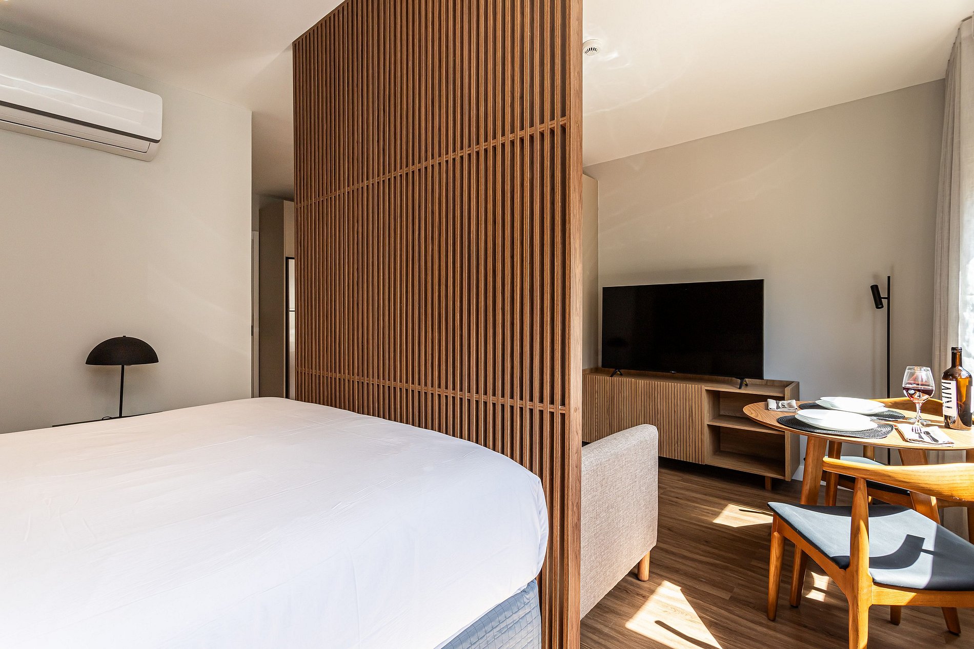 *A decoração e as amenidades dos apartamentos podem ter variações como cafeteira (pó x cápsula), ferro de passar x steamer, fogão x cooktop (com ou sem forno).