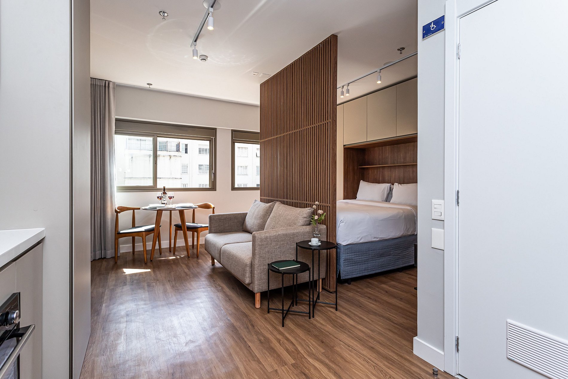 Desfrute do melhor de São Paulo hospedando-se neste estúdio moderno e aconchegante adaptado para pessoas com mobilidade reduzida no Ayra Higienópolis.