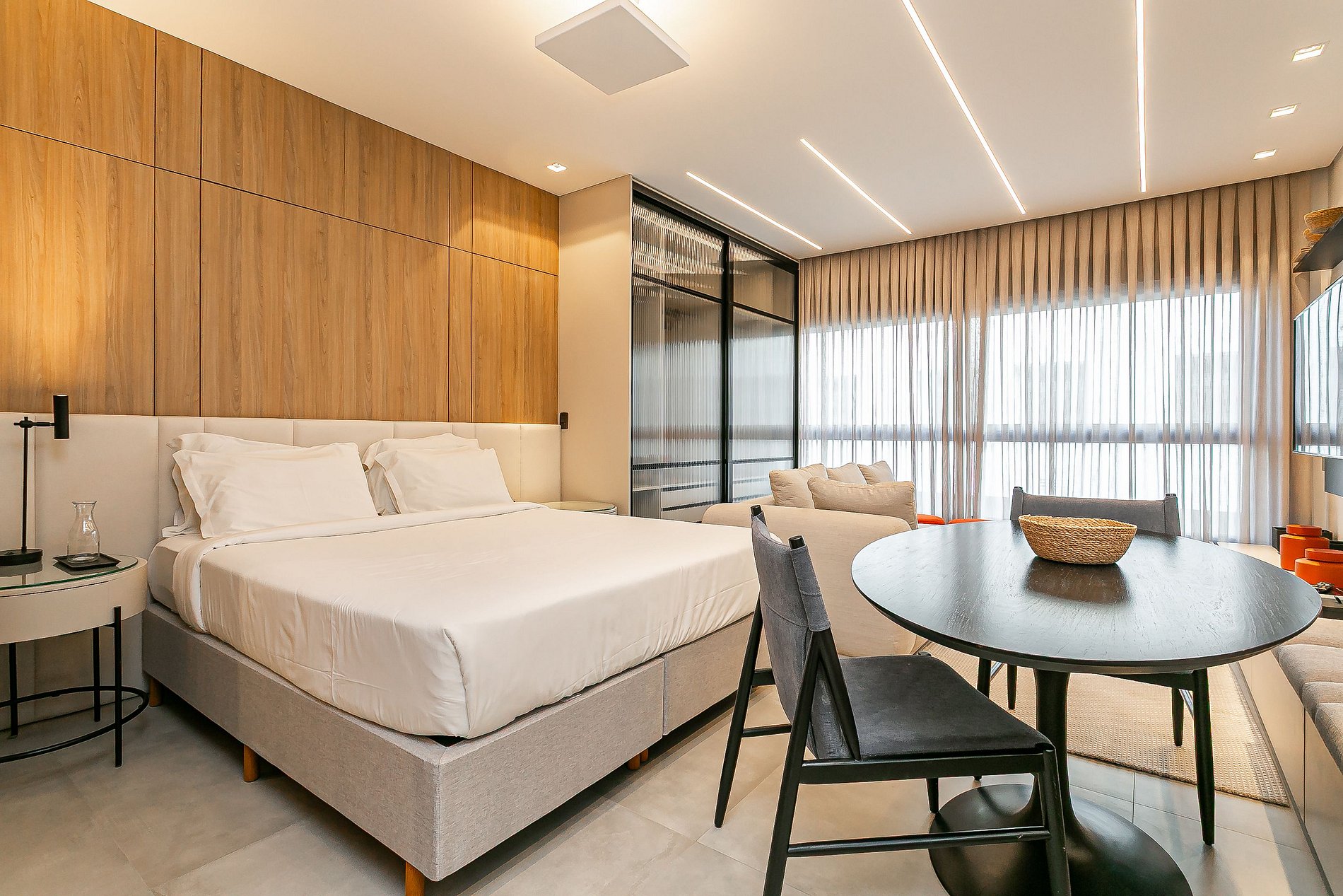Temos diversas unidades de studios neste prédio, sendo todos projetados para você ter uma ótima estadia — o padrão dos movéis e facilidades são as mesma, entretanto a vista, layout e design PODEM VARIAR.