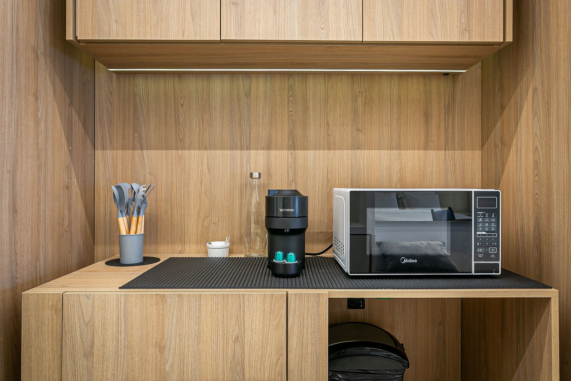 - Cozinha equipada com itens básicos para o preparo de refeições rápidas